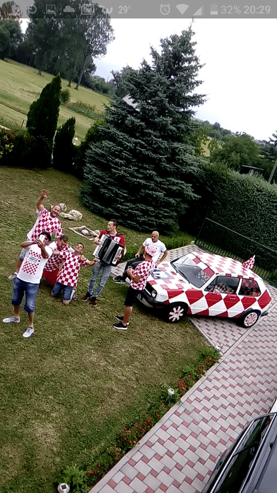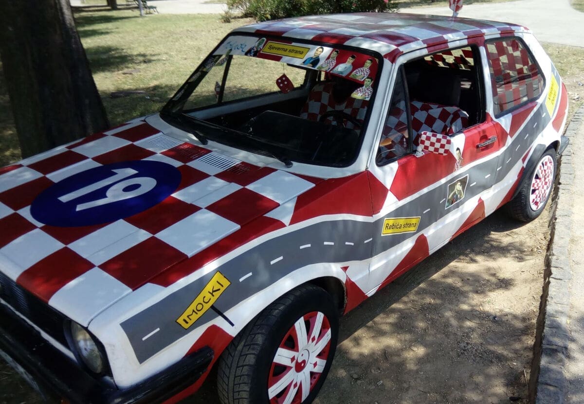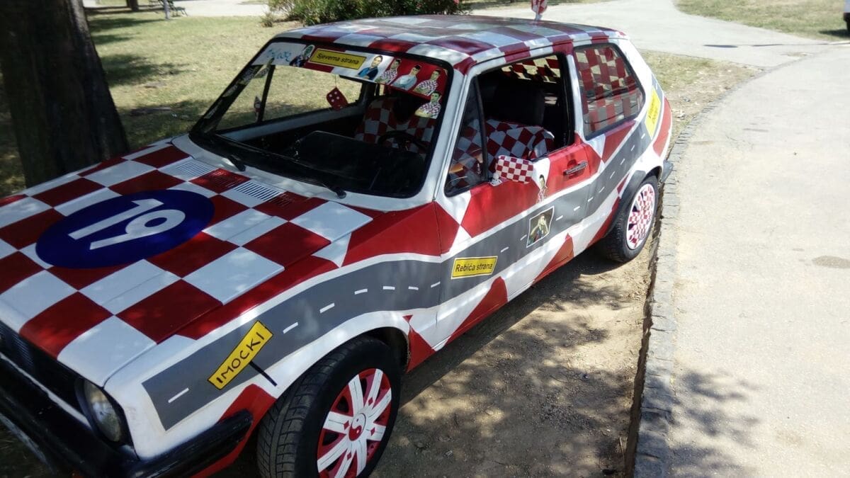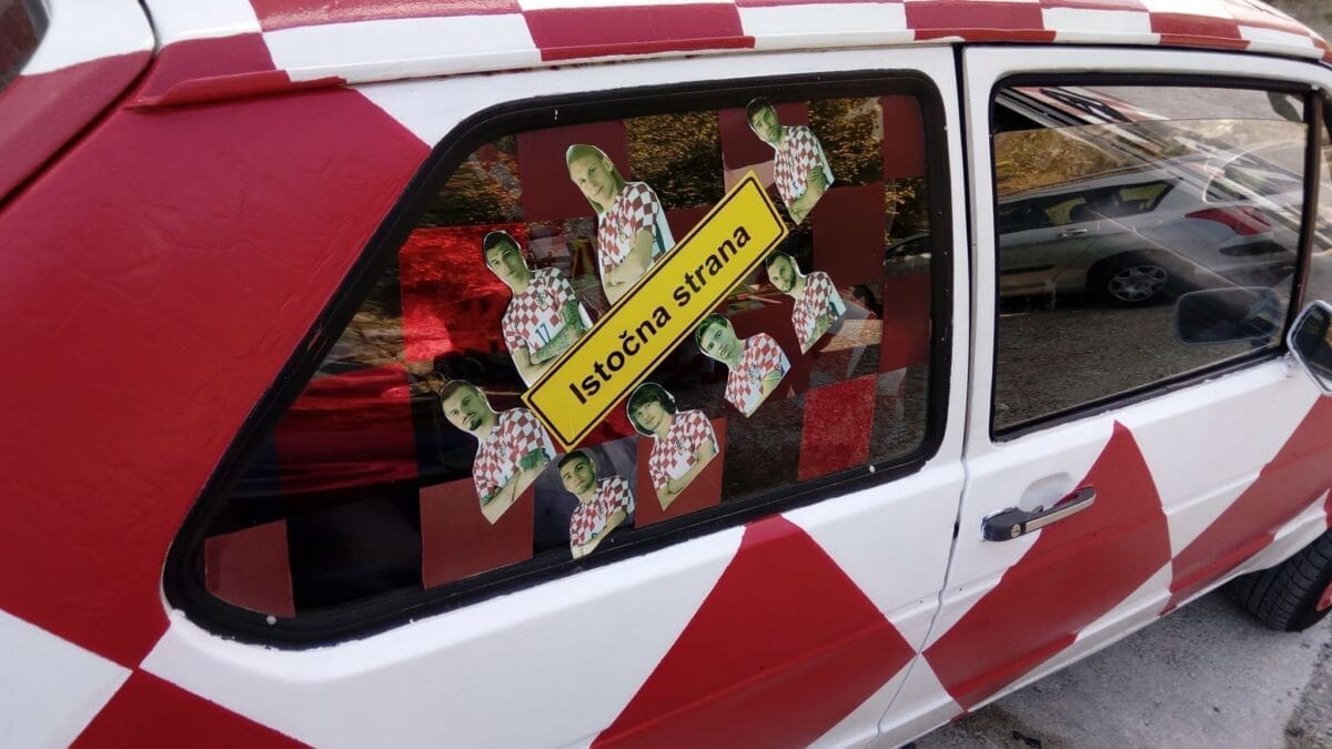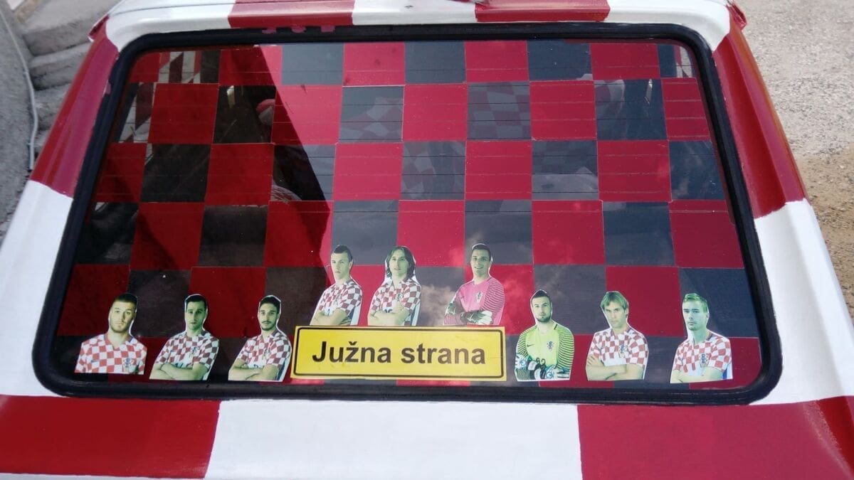 Legendarni navijački automobil poznat kao 'kockasti golf' dobio je svoj novi dizajn. Uz neizbježne kockice tu su sada i strane svijeta, ali one domaće. Imamo južnu, istočnu, sjevernu i Rebića stranu. Na svakoj strani su lica naših reprezentativaca, a ona Rebića strana nalazi se na cesti između "Imockog i Vinjana Donjih".