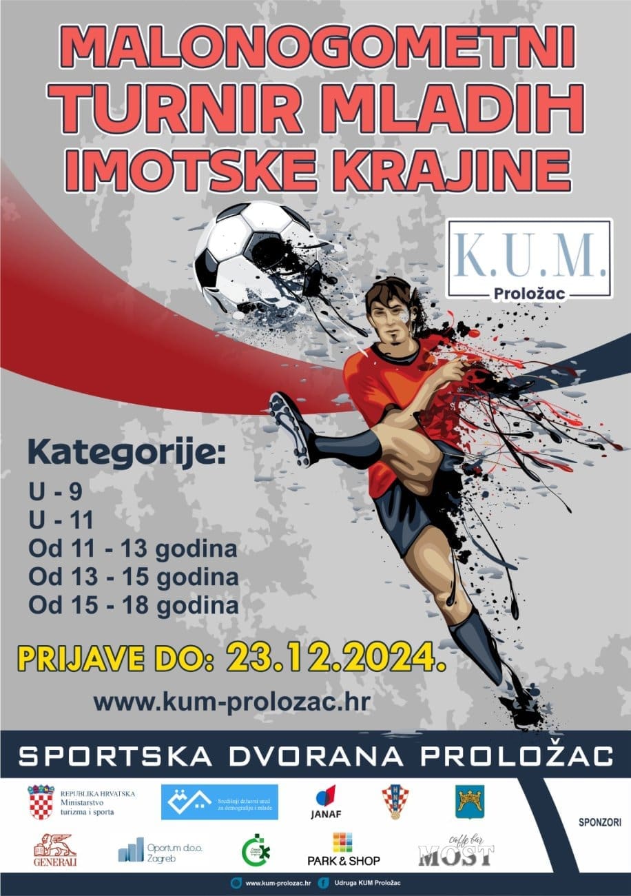 U nedjelju, 05. siječnja u Sportskoj dvorani u Prološcu održat će se završnica Malonogometnog turnira mladih Imotske krajine s finalnim utakmicama i utakmicama za treće mjesto te dodjelom nagrada u pet kategorija natjecanja koje će uručiti nekadašnji kapetan Hajduka i hrvatski nogometni reprezentativac Hrvoje Vejić i legendarni Hajdukov igrač i trener Zoran Vulić.