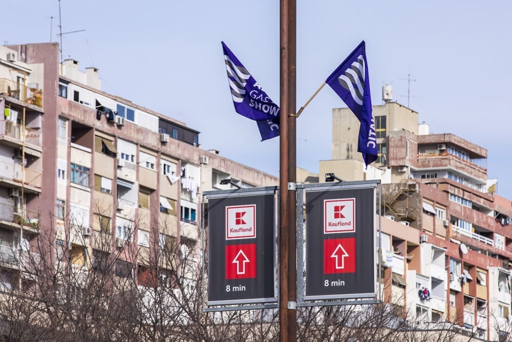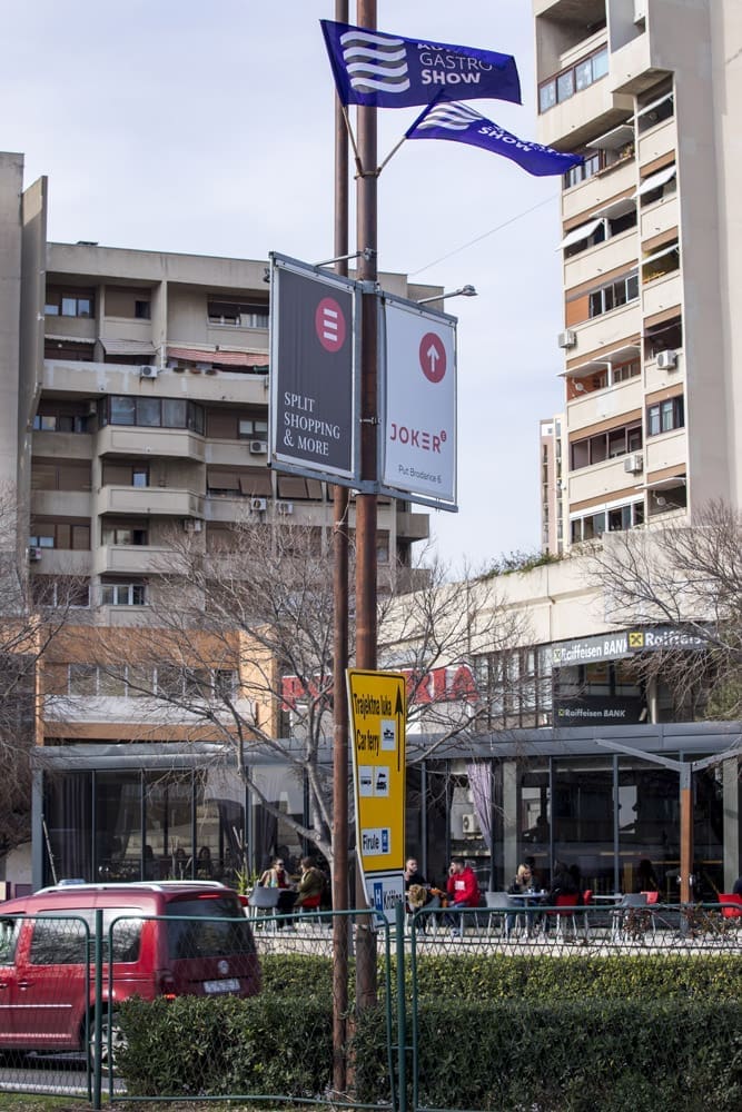 Ulazeći u Split čovjek bi pomislio da ulazi u svjetsku shopping destinaciju. Na skoro svakom rasvjetnom stupu, ma s koje strane dolazili, istaknute su po dvije reklame trgovačkih centara, samoposluga, mesnica, slastičarni... dok prometni znakovi i putokazi za povijesne znamenitosti tek sramežljivo proviruju pored puta, navodeći one koji grad po prvi put posjećuju, a tih je godišnje više milijuna, na pomisao da je Split tek jedan veliki shopping centar.