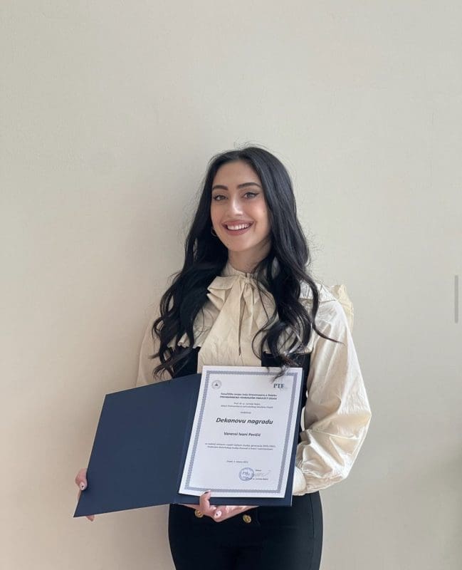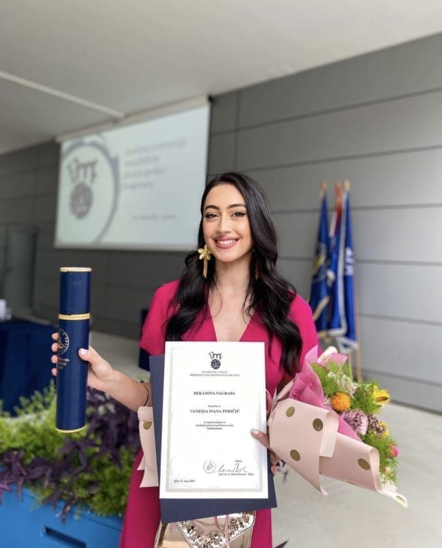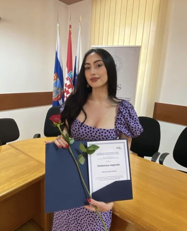 Tijekom studija osvojila sam tri Dekanove nagrade. Jednu sam dobila po završetku PMF-a u Splitu, a druge dvije na PTF-u u Osijeku. Prva nagrada mi je bila veliki šok jer ju nisam očekivala. Sjećam se da sam u trenutku prozivanja svog imena ustala i potražila zbunjenim pogledom mamu u publici. Vjerujem da su sve tri nagrade pokazatelj da radim ono što volim jer nikad nisam pretjerano trčala za ocjenama. Više trčim za znanjem i volim sve što radim raditi s ljubavlju i što kvalitetnije.