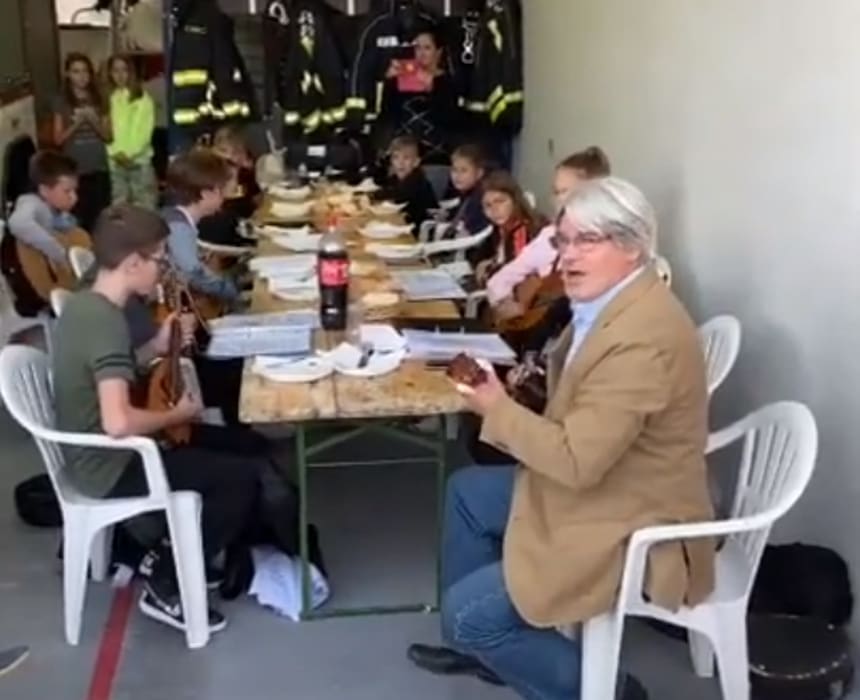 Naime, kako nam kažu u ovom DVD-u, dio djece članova društva, na inicijativu mještana, počeo se sastajati i učiti svirati mandolinu i gitaru, a voditelj je bio maestro Miro Miše iz Trogira.