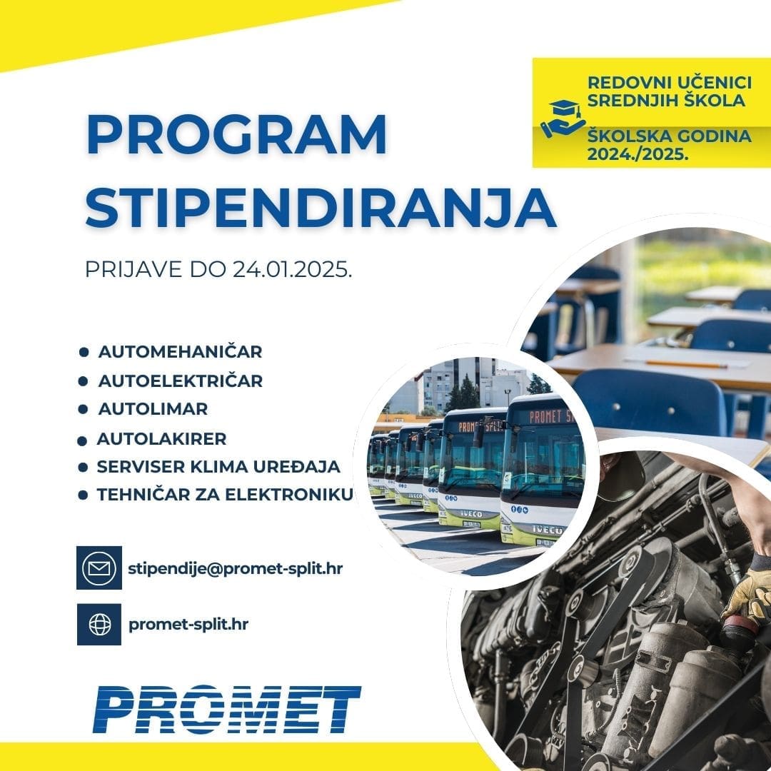 Prijave se podnose na email adresu stipendije@promet-split.hr, a natječaj je otvoren do 24. siječnja. Detaljne informacije o natječaju možete pronaći na web stranici Prometa.
