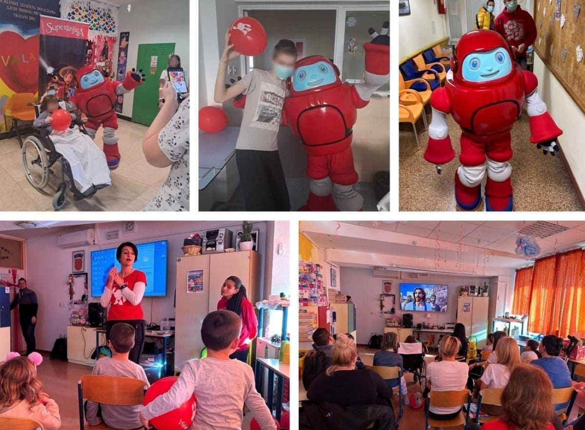 Kliniku za dječje bolesti i Kliniku za dječju kirurgiju posjetila je ekipa popularnog crtića Superknjiga i njihova vesela maskota Gizmo. Maleni pacijenti koji se liječe na ovim bolničkim odjelima i pohađaju školu u bolnici, baš kao i velik broj njihovih vršnjaka, redovito prate epizode Superknjige i s nestrpljenjem su iščekivali susret s Gizmom uživo.