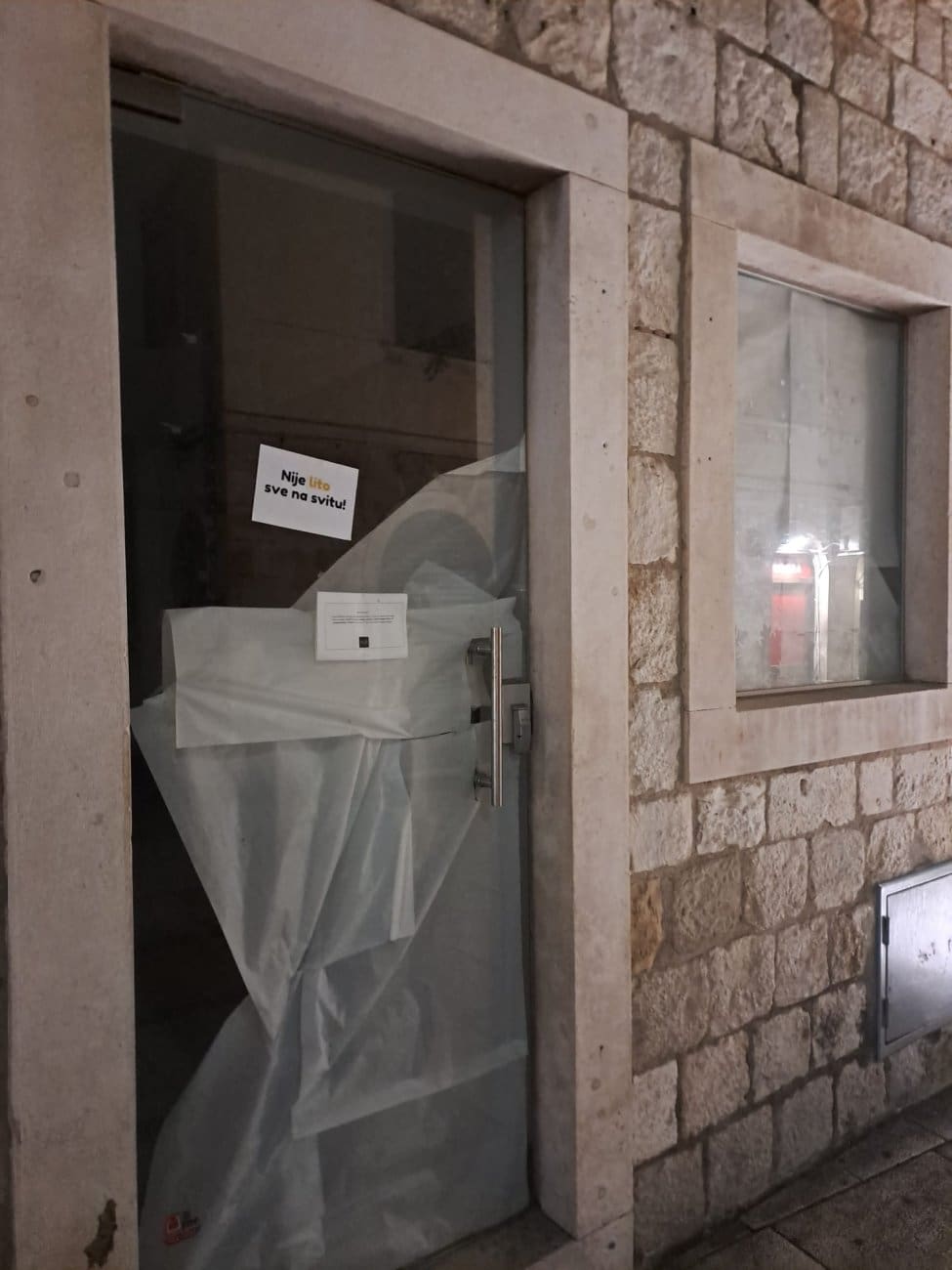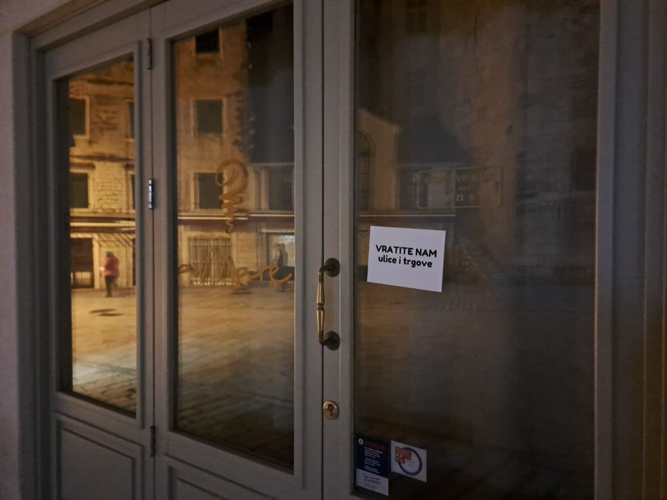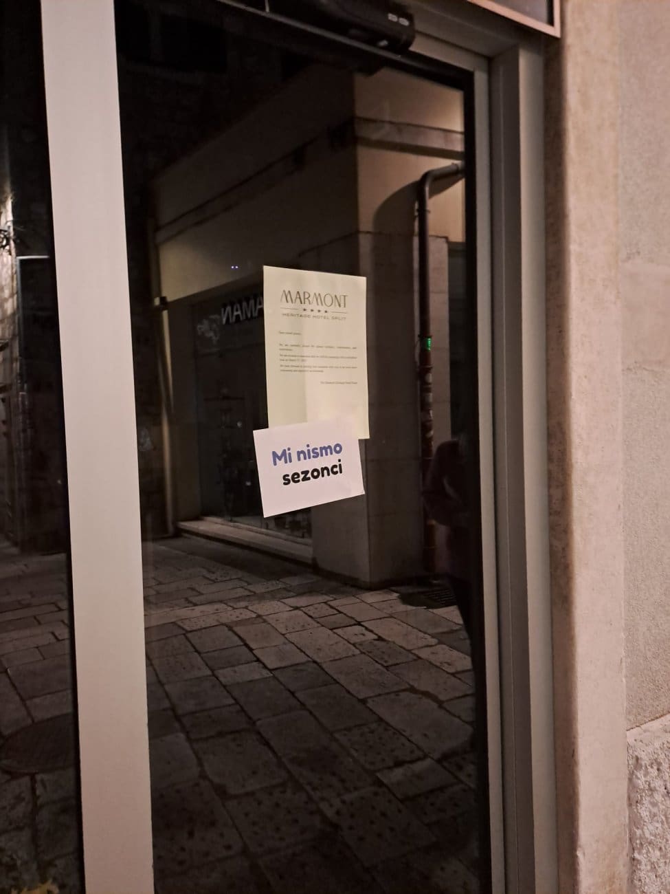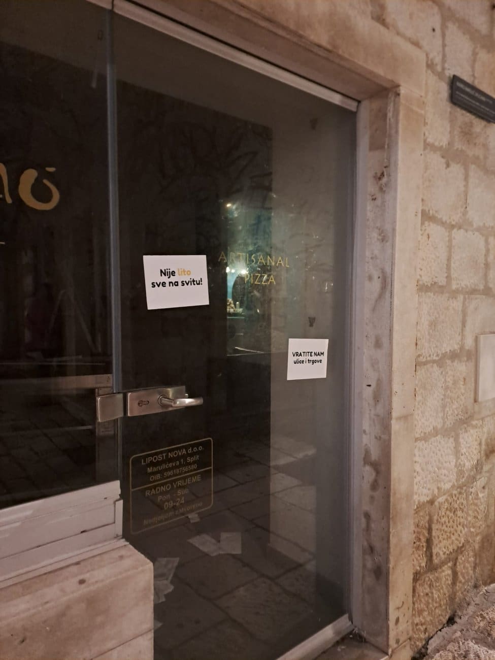 Kraj je tjedna, a splitske ulice "umirile" su se nakon Hajduka i rukometa. Ipak, tijekom večeri brojne zatvorene prodavaonice od Varoša, preko Marmontove do Geta i Peristila oblijepljene su zanimljivim porukama.