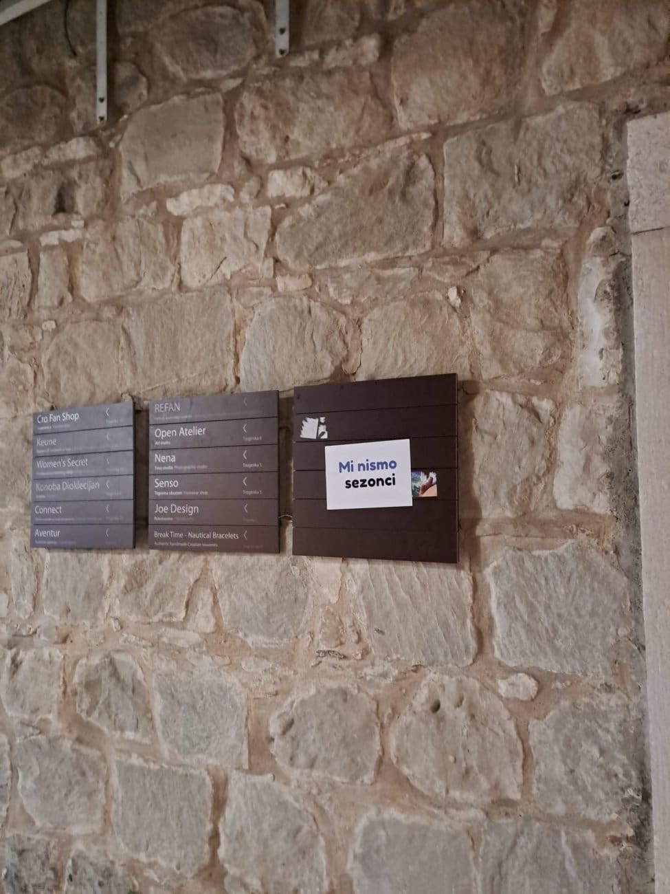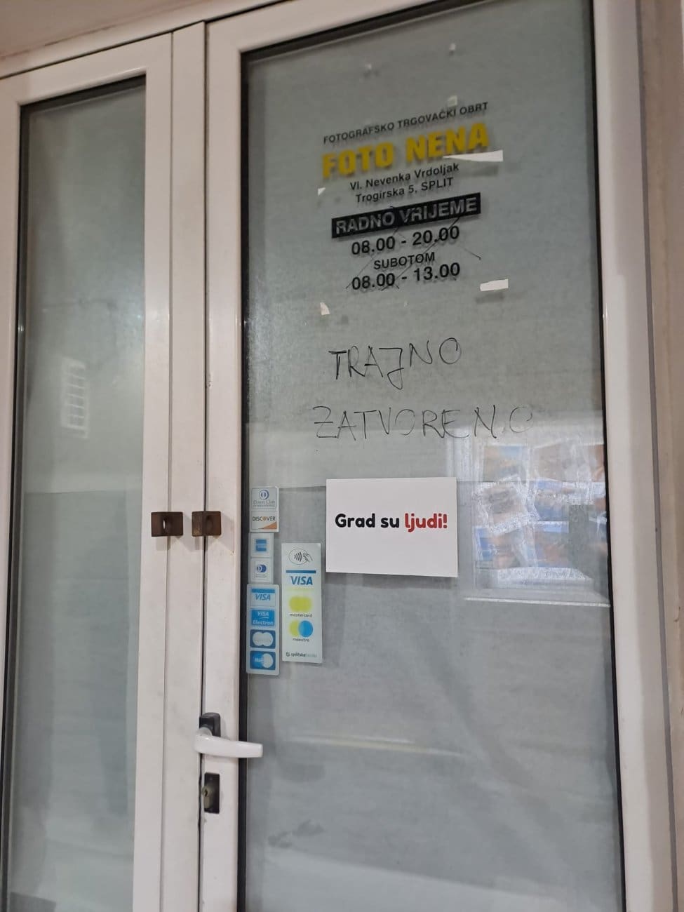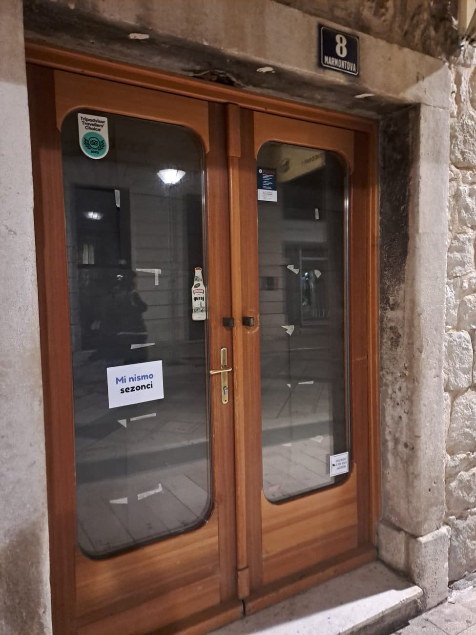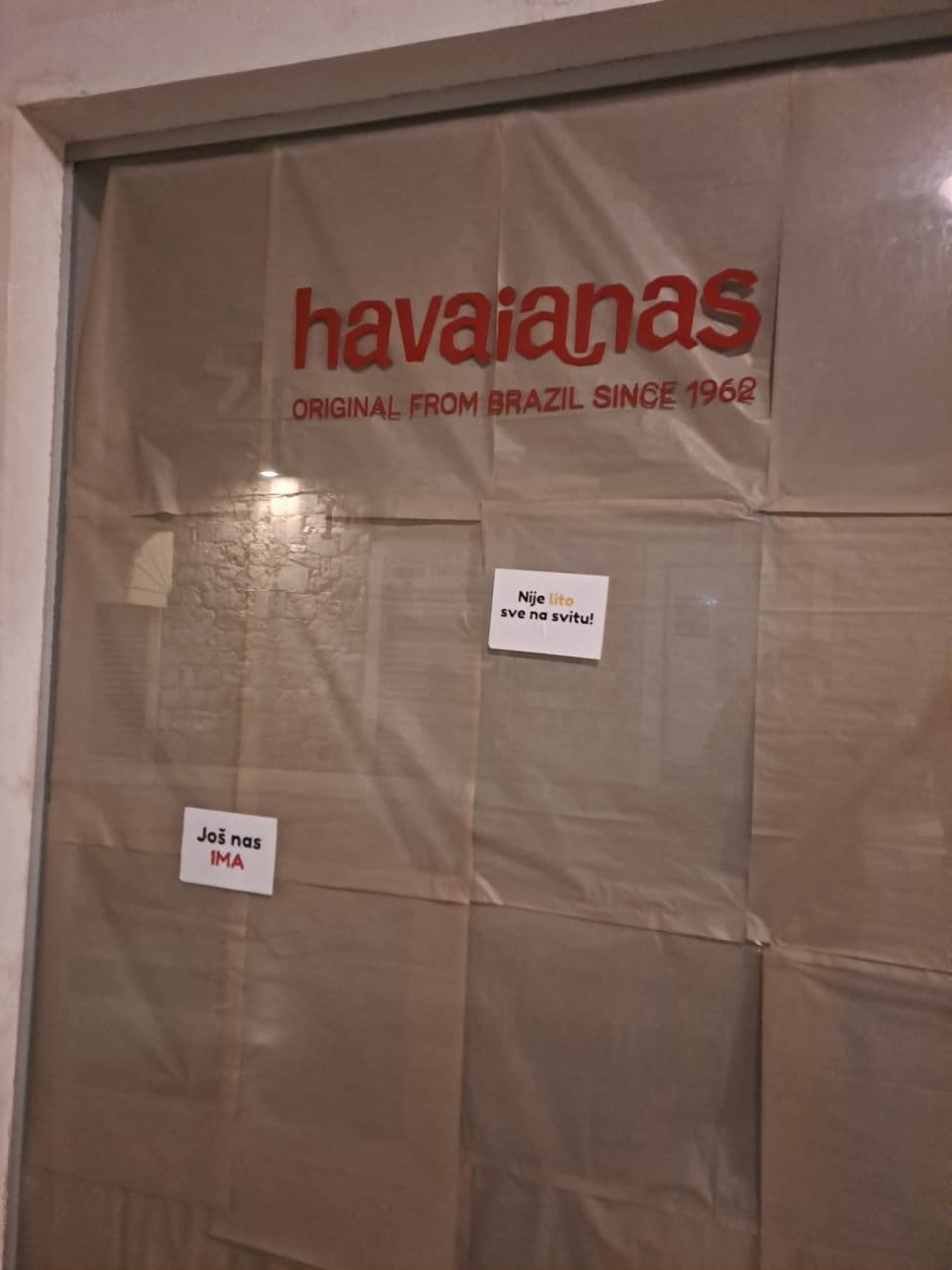 Kraj je tjedna, a splitske ulice "umirile" su se nakon Hajduka i rukometa. Ipak, tijekom večeri brojne zatvorene prodavaonice od Varoša, preko Marmontove do Geta i Peristila oblijepljene su zanimljivim porukama.