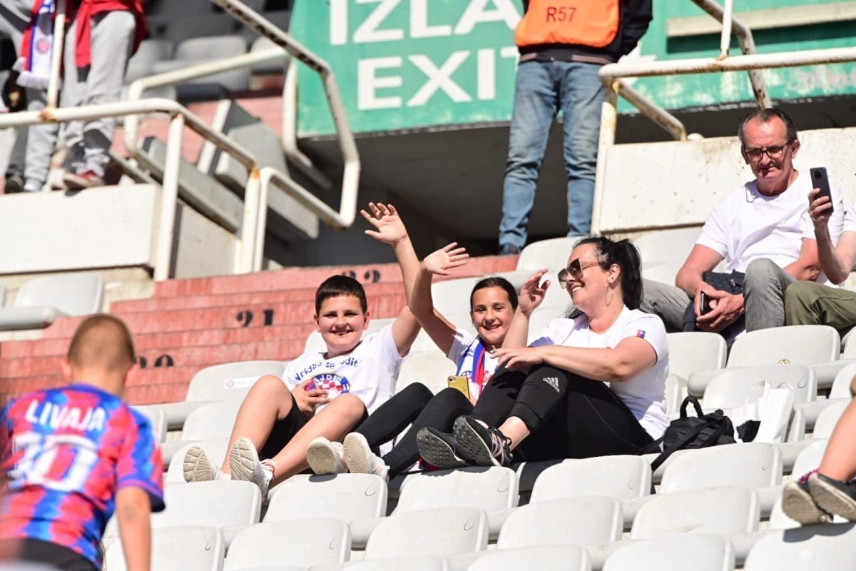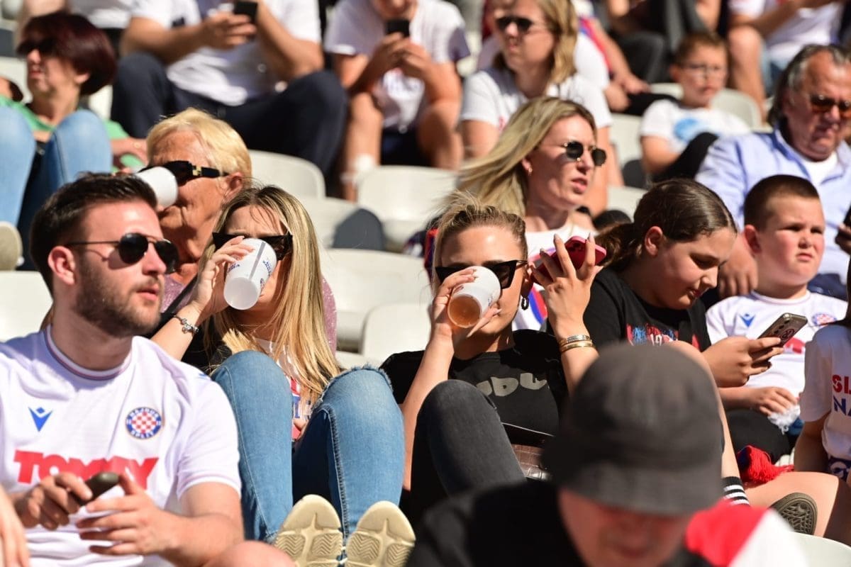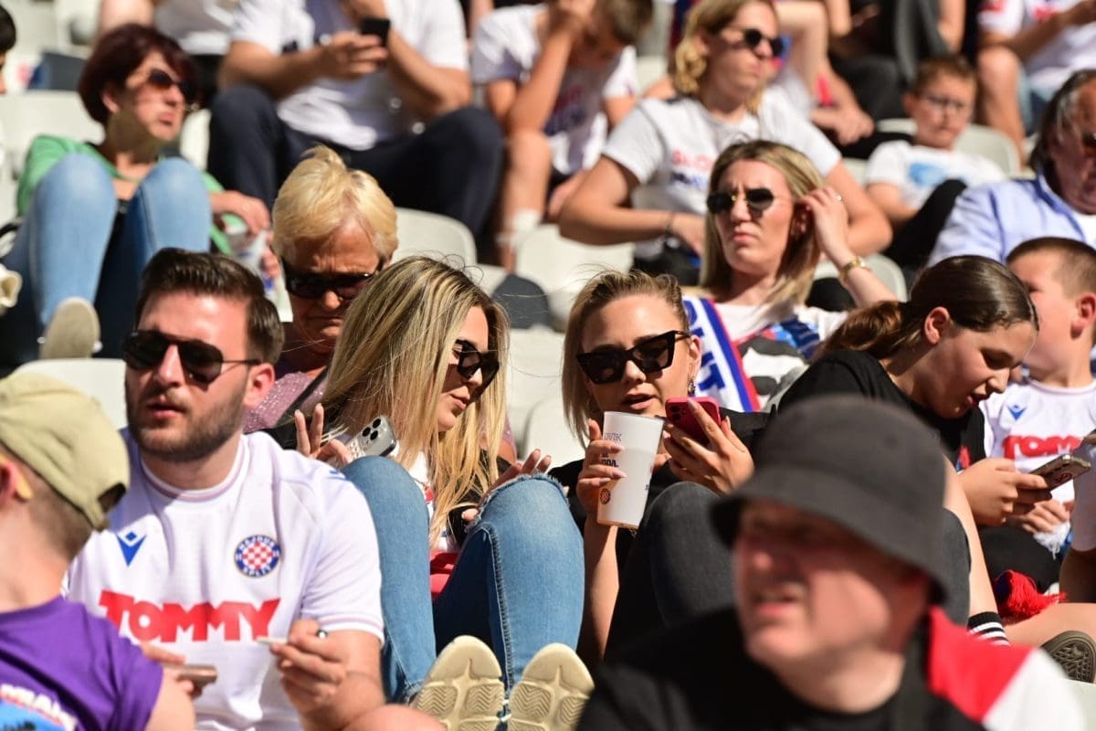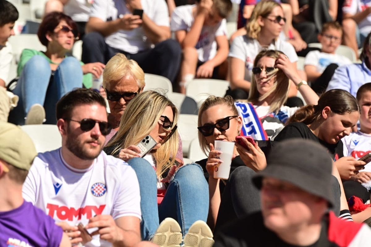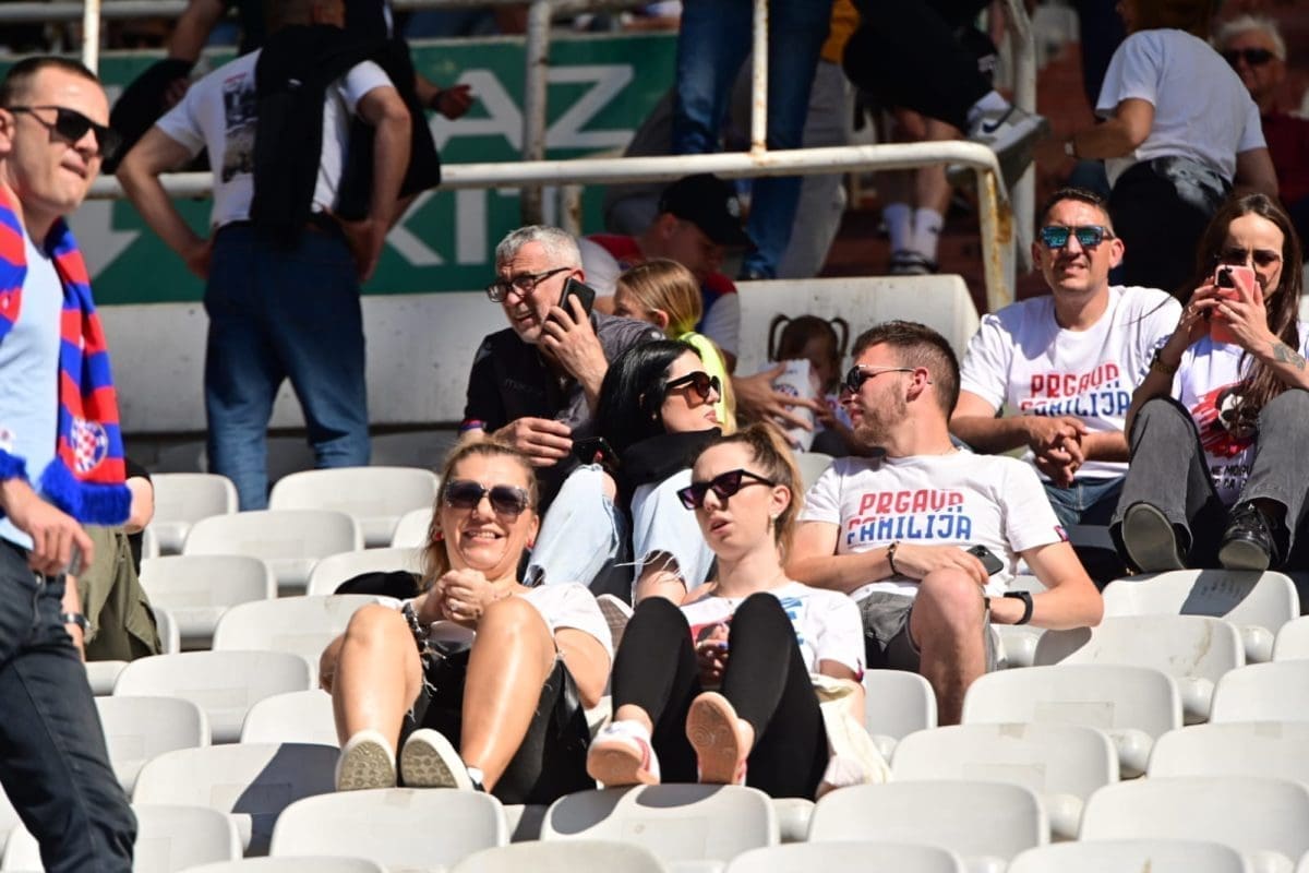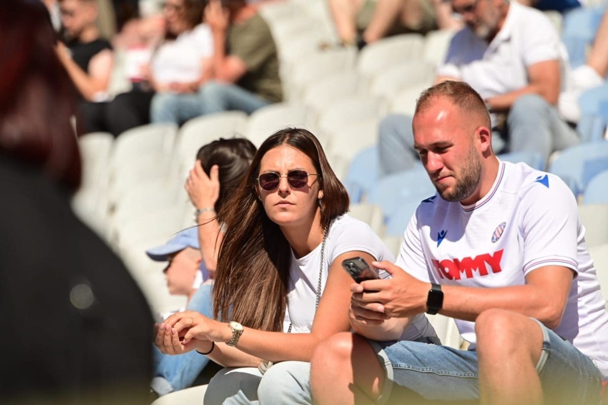 Navijači svih generacija došli su dati potporu voljenom klubu, a među brojnim lijepim djevojkama i ženama, posebno su se isticale majka Borne Buljana i supruga Marka Livaje. Iris je došla uživo pratiti utakmicu iako je Marko ozlijeđen već neko vrijeme.