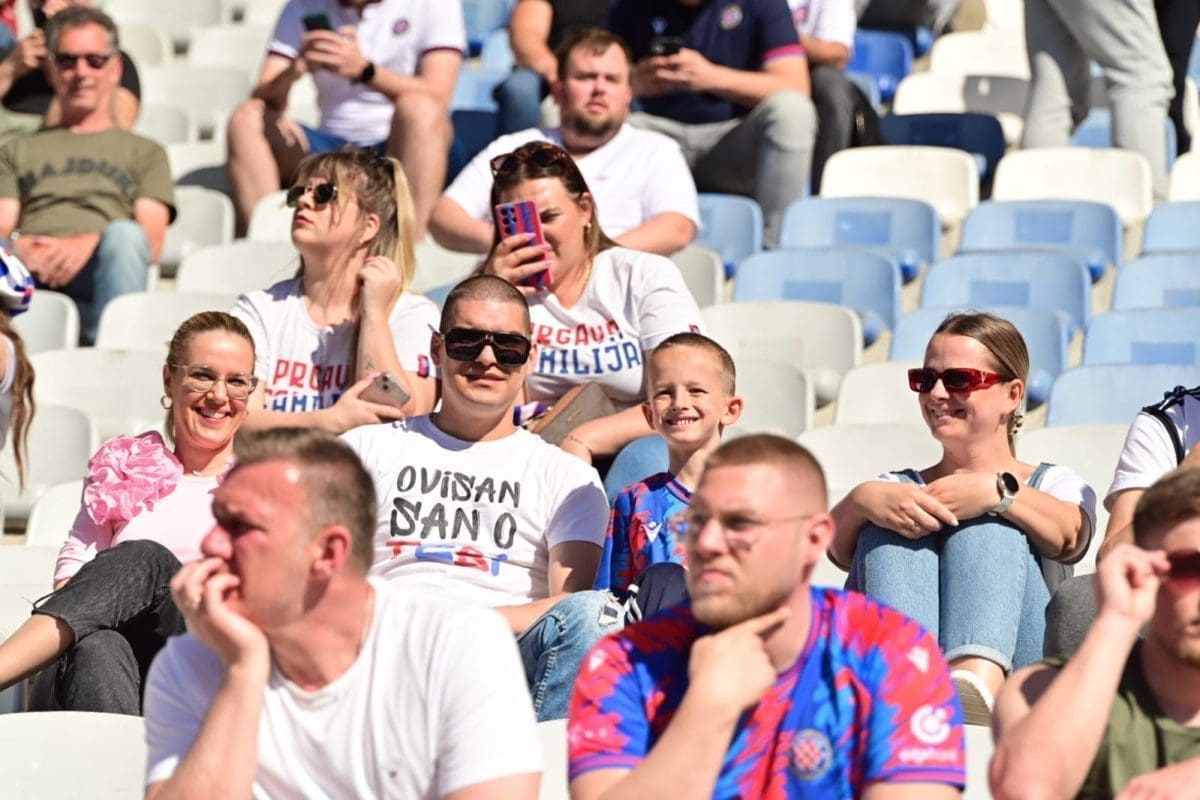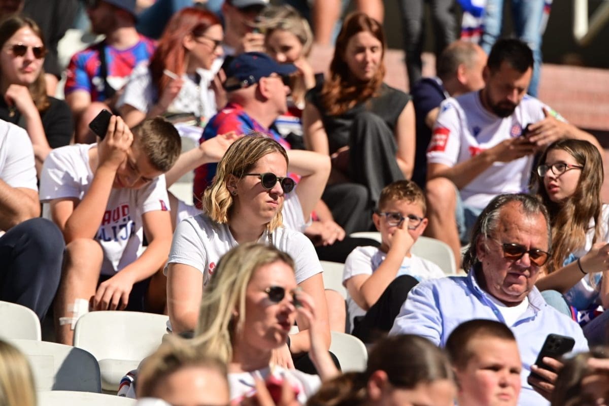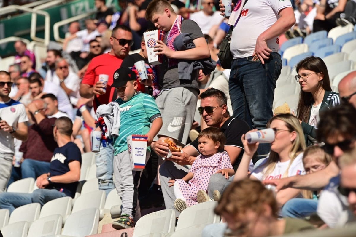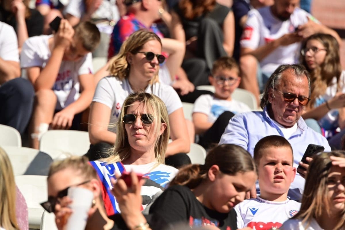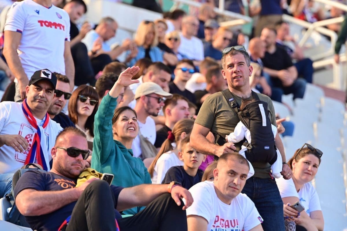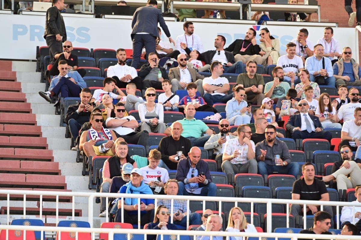 Navijači svih generacija došli su dati potporu voljenom klubu, a među brojnim lijepim djevojkama i ženama, posebno su se isticale majka Borne Buljana i supruga Marka Livaje. Iris je došla uživo pratiti utakmicu iako je Marko ozlijeđen već neko vrijeme.