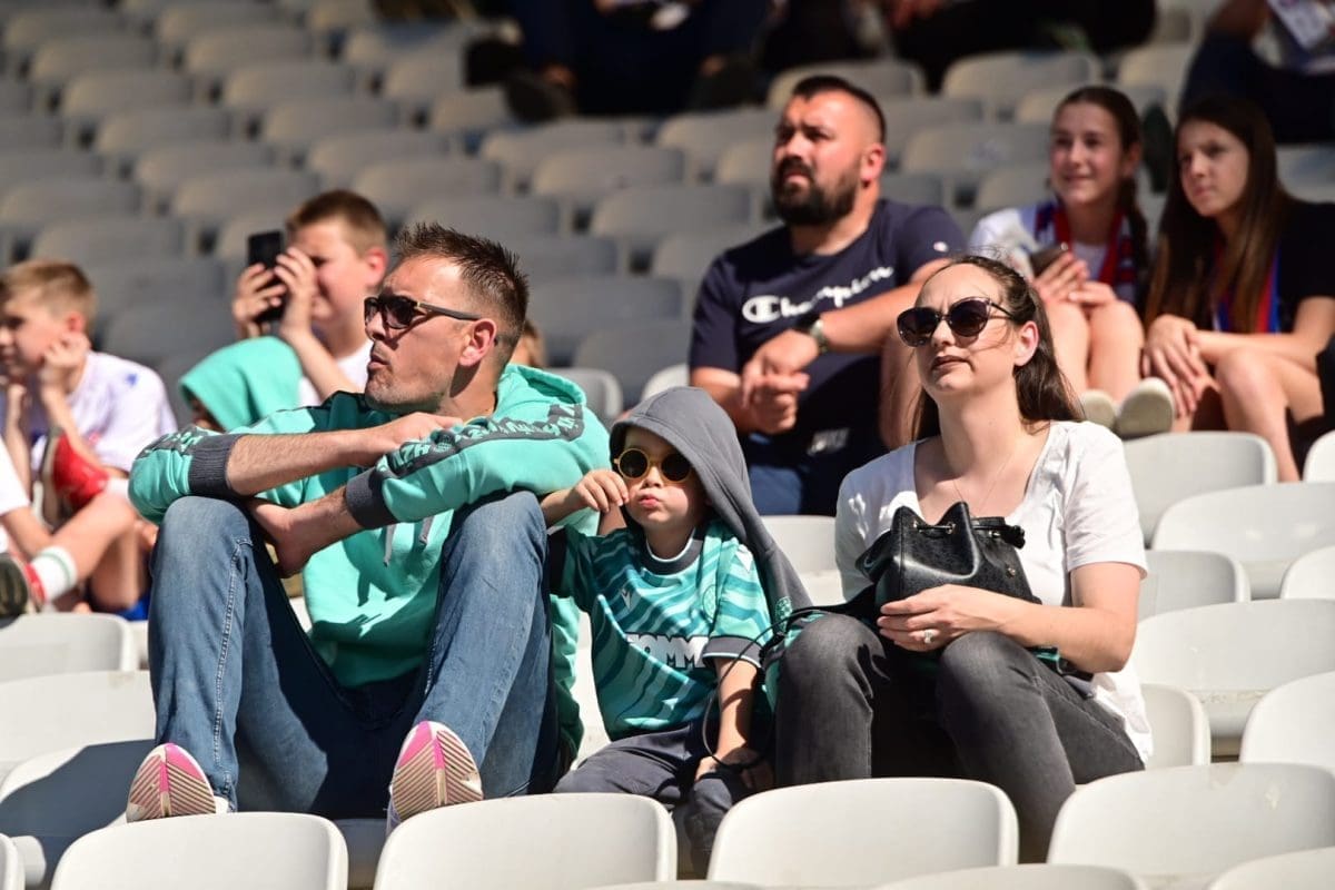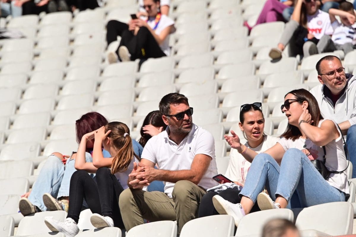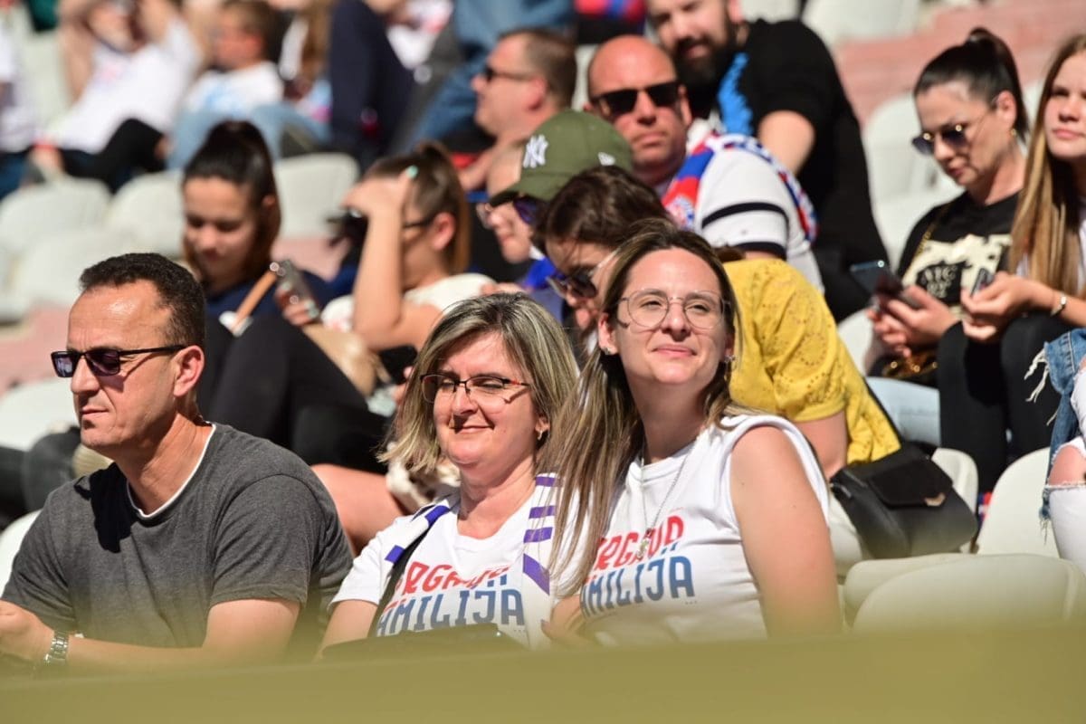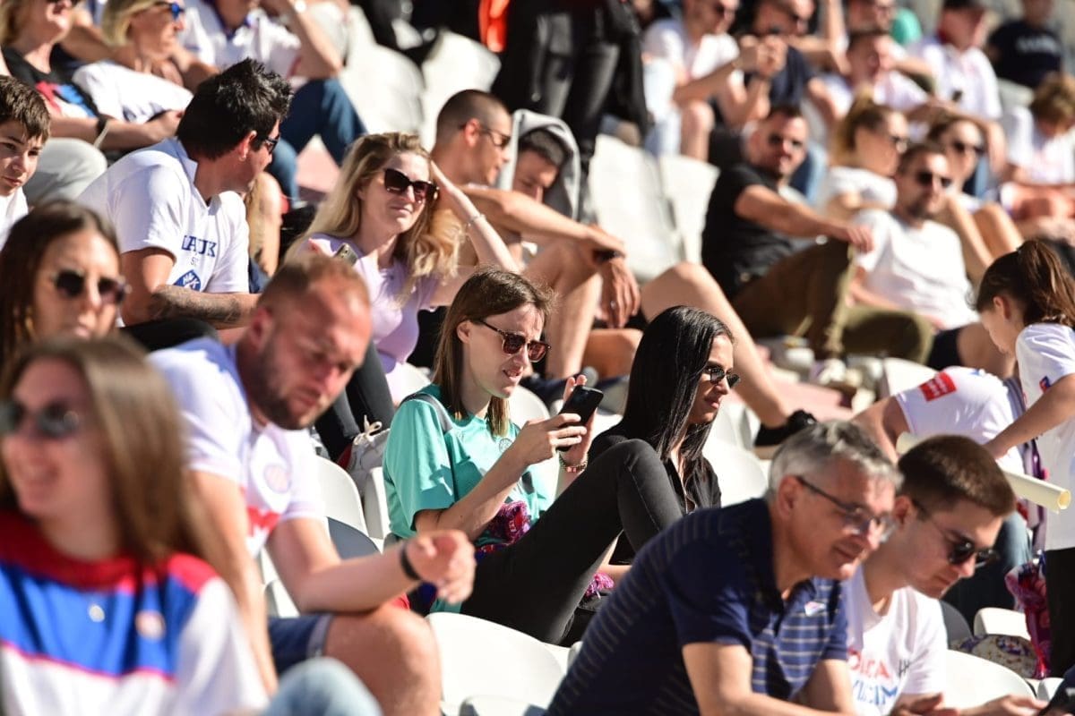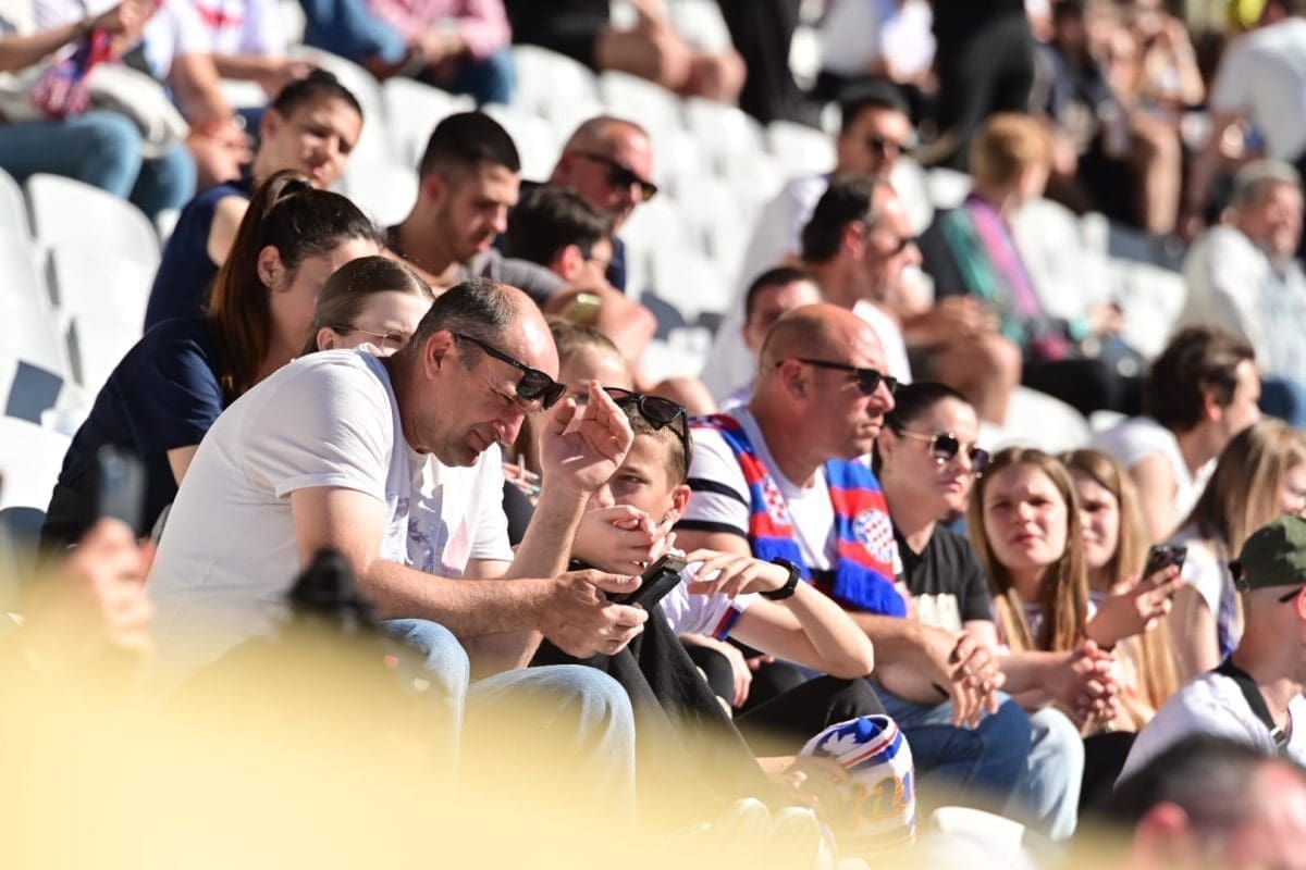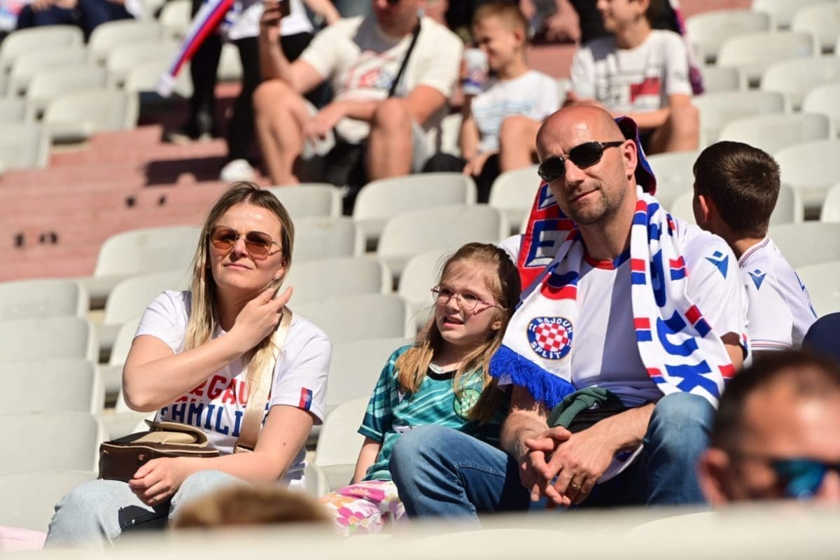 Navijači svih generacija došli su dati potporu voljenom klubu, a među brojnim lijepim djevojkama i ženama, posebno su se isticale majka Borne Buljana i supruga Marka Livaje. Iris je došla uživo pratiti utakmicu iako je Marko ozlijeđen već neko vrijeme.