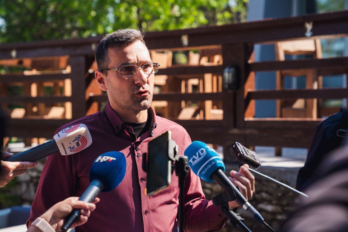"Meni se napravila šteta preko 10 milijuna kuna. Mene se 12 godina proziva, mi smo sve što smo trebali ovdje napraviti, napravili smo. Park šuma Marjan postoji i treba je poštivati, ali isto tako treba poštivati privatno vlasništvo i ne treba ga se omalovažavati. Park šuma je jedno, privatno vlasništvo je drugo. Smatram da vi kao vlasnici ne bi trebali biti opterećeni politikom i svjetonazorom. Grad Split treba napraviti pravo prvokupa i treba donijeti kolika je minimalna cijena tog zemljišta", kazao je u nastavku gradonačelnički kandidat HGS-a.