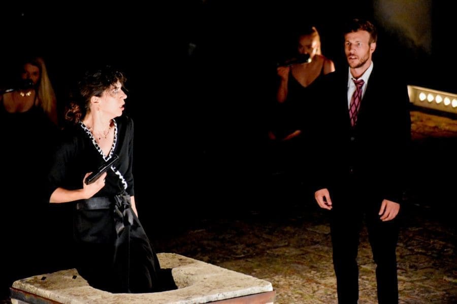 Cijeli ansambl (osim što uloge nisu mogle biti bolje pogođene, a odigrane su na maksimumu snage, želje i uvjerljivosti) zaslužuje goleme pohvale za savršenu dikciju i nevjerojatnu ekspresivnost u uvjetima koji su daleko od bajnih (vjetar, kiša, otvoren prostor slabe akustike), kolektivne su govorene dionice uvježbane do savršenstva i djeluju kao moderna verzija antičkih semikorova, a i scenski je pokret fascinantan, od senzualno-divljačkih plesnih točaka ženskog dijela ansambla, do sasvim idiotskog, nejunačkog hoda ratnika u muškom dijelu, gdje se publika morala grohotom smijati čak i kad je tekst bio duboka groteska. Meštrovićev je Kaštilac izazovan prostor gdje scenografski „dobivate“ utoliko što se kamen i stupovi uklapaju u sve koncepte od antičkih do renesansnih, ali trebalo je provesti i izazovne ideje poput mikrofona i pokretnoga klavira, kao i uklopiti odlično osmišljen video (Ivan Marušić Klif) i oblikovanje svjetla (Srđan Barbarić) u kompletnu funkcionalnu, ali nenametljivu scenografiju (Miljenko Sekulić). U tom su duhu pametno izabrani i kostimi (Marita Ćopo), svi u crnoj boji, ali krojevima savršeno prikladni za uloge (slobodna i emancipirana Lizistrata s visokim prorezom na haljini, ugledna Korinćanka s pretjerano elegantnom haljinom i šeširom, ratoborna Spartanka u kombinezonu – jedina u hlačama!).