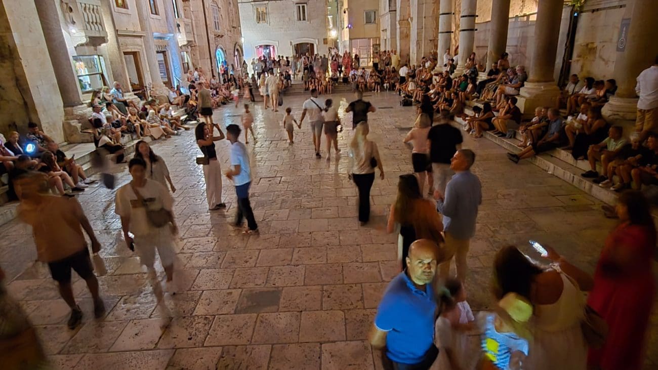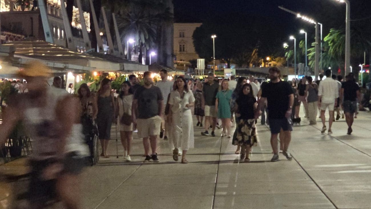 Topla i ugodna nedjeljna večer izmamila je brojne Splićane i turiste u centar grada gdje je vladala prava ljetna atmosfera. Riva je, kao i obično, bila glavno okupljalište – ispunjena šetačima, obiteljima, parovima i grupama prijatelja koji su uživali u opuštenom završetku vikenda.