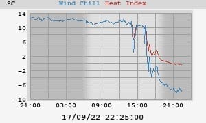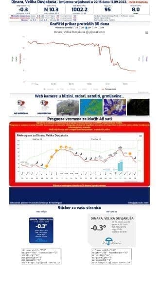 U 22 sata na mjernoj postaji Velika Duvjakuša na Dinari mjeri se -0.3 stupnja s tendencijom daljnjega pada. Uz olujne udare bure osjet hladnoće je čak -8 stupnjeva.