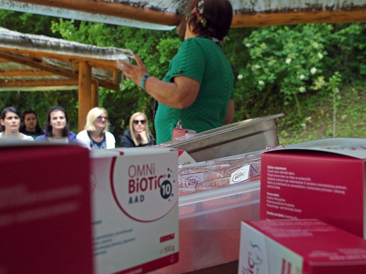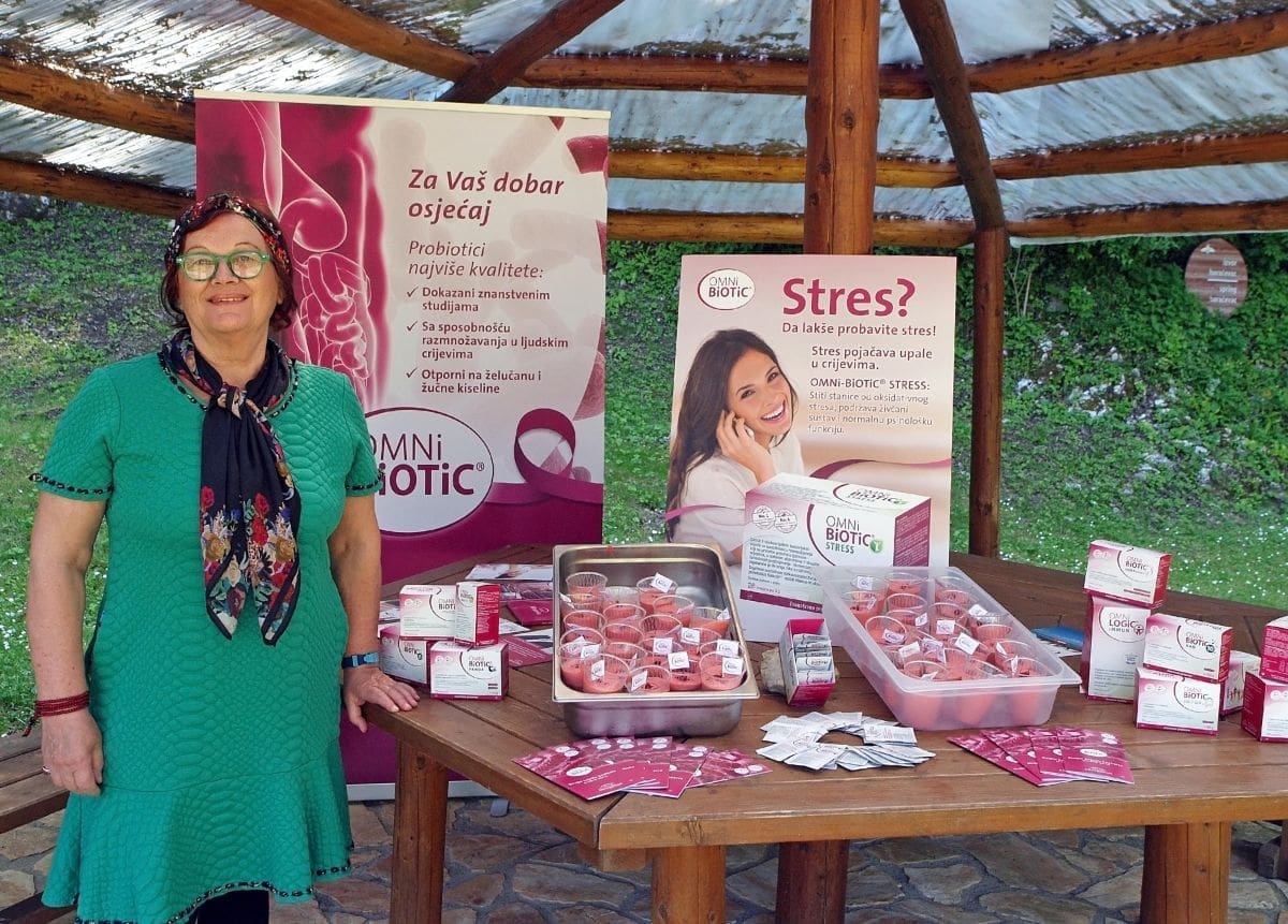 - Postoje tri aspekta suvremenog života koji su izuzetno štetni za naš mikrobiom- nepravilna prehrana, stres i dugotrajno konzumiranje lijekova, posebno antibiotika. Upravo to smanjuje broj i raznovrsnost crijevnih bakterija uslijed čega se mnogi metabolički procesi ne odvijaju na pravilan način. To oštećuje naš obrambeni sustav (imunitet) i njegov mehanizam koji se većinom nalazi u crijevima. Neravnoteža naših bakterija u simbiozi i disbioza odražava se na probleme s kosom, kožom, pretilosti i svim psihičkim problemima - rekla je magistra Premerl i pozvala okupljene žene da se posluže osvježavajućom zdravom slasticom s jagodama i u nju umiješaju dnevnu dozu OMNi-BiOTiC® STRESS sinbiotika.