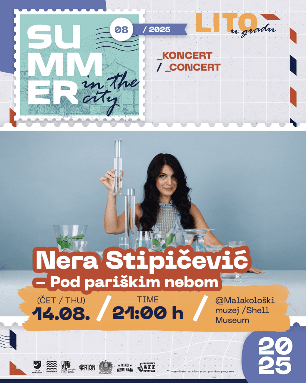 „Pod pariškim nebom“ s Nerom Stipičević — glazbeno-poetsko putovanje kroz šansone, kazalište i književnost u intimnoj atmosferi Malakološkog muzeja.