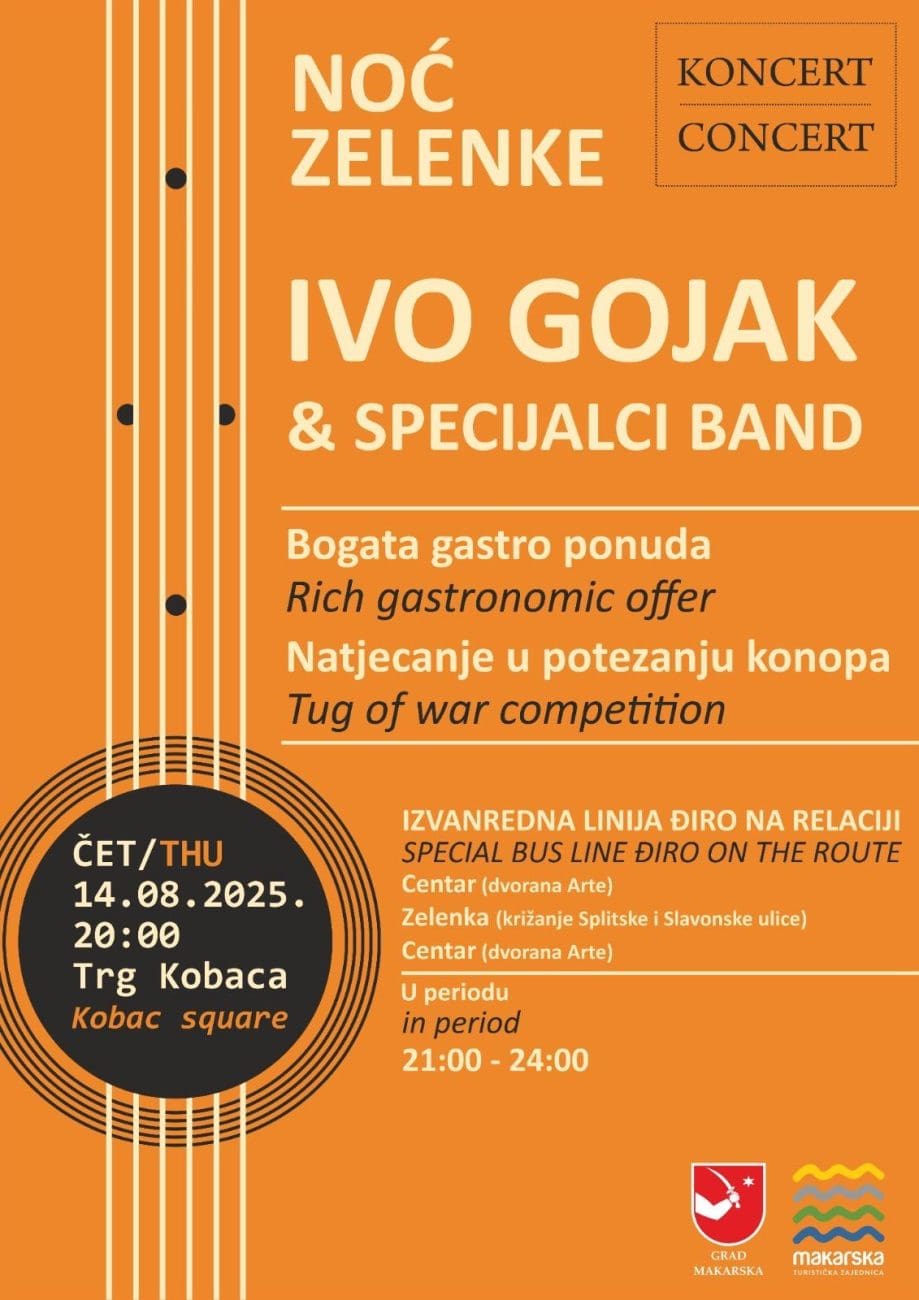 Zabava za domaće, ali i za goste koji ovih dana odmaraju u Makarskoj. Uz dobru glazbu i dobru spizu, na Noći Zelenke bit će i štandova sa različitim atraktivnim ponudama.