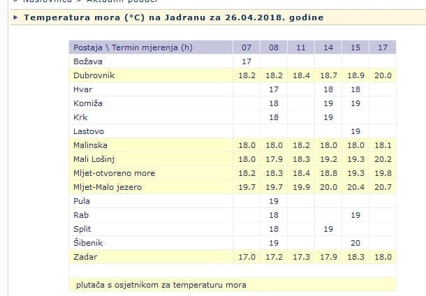 Dah ranog ljeta može se osjetiti posljednja dva tjedna u Dalmaciji. Kišno i prohladno razdoblje zamijenilo je vrijeme koje više priliči lipnju nego travnju. Temperature zraka već su mjestimice zadnjih desetak dana dosezale vrućih 30°C, a ponegdje su pali i apsolutni rekordi, što znači da nikada u travnju nije bilo toplije od početka službenih meteoroloških mjerenja.