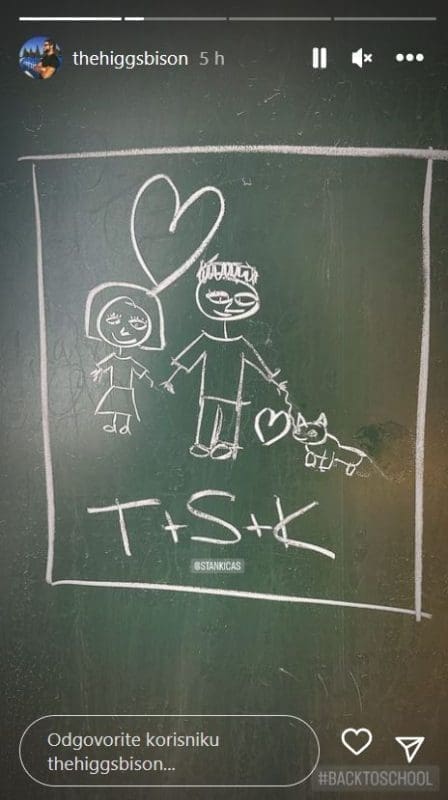 - T+ S + K - pisalo je na ploči uz crtež. Sudeći prema onome što je bilo nacrtano, slovo T označavalo je Tonija, slovo S označavalo je Stankicu i slovo K psa Kiću. Gesta je, izgleda, raznježila Tonija koji je to odmah odlučio podijeliti s pratiteljima na Instagramu.