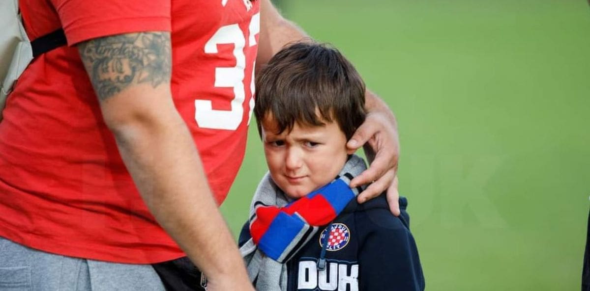 Sandro je mislio da će doći do dresa Filipa Krovinovića, Lovre Kalinića ili Emira Sahitija koji su mu najdraži igrači Hajduka, nije se uspio probiti pored starijih gledatelja i dresovi spomenutih nogometaša završili su u rukama drugih navijača, a njegovi snovi su se u sekundi ugasili, a nadamo se samo nakratko. U tom trenutku je tužan prišao svom ocu i tu je nastala fotografija za koju vjerujemo da će doći i do igrača Hajduka.