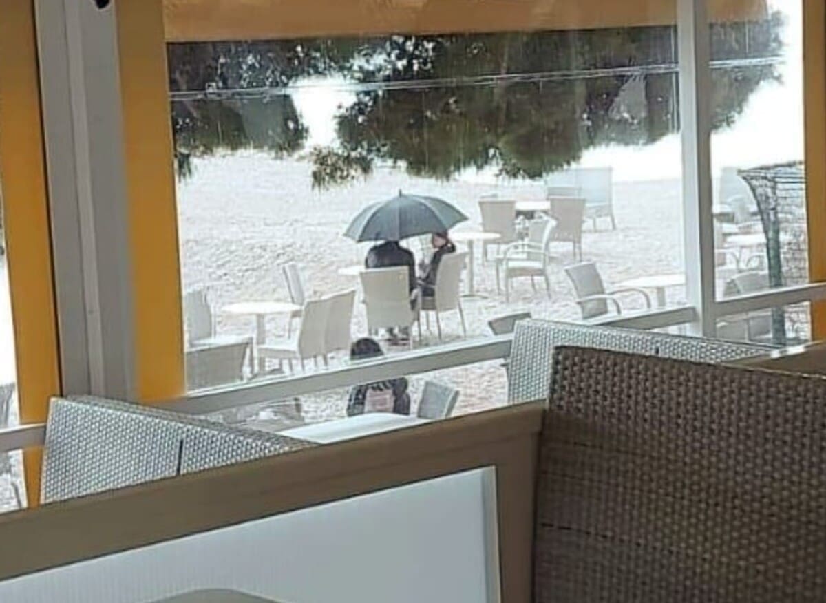 "Kišobran za dvoje" napisali su u opisu fotografije na kojoj su "uhvaćeni" muškarac i djevojka dok su sjedili otvorenom dijelu kafića - na plaži.