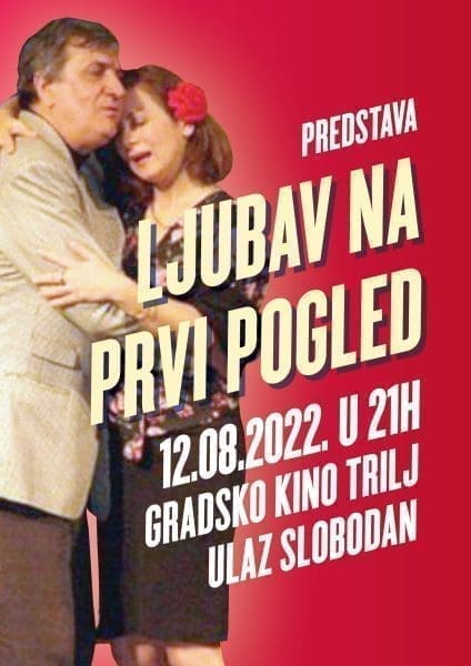 "Ljubav na prvi pogled" naziv je romantične komedije čuvenog komediografa Fadila Hadžića koja će se triljskoj publici predstaviti u petak, 12.08.2022. s početkom u 21:00 sat u Gradskom kinu Trilj.