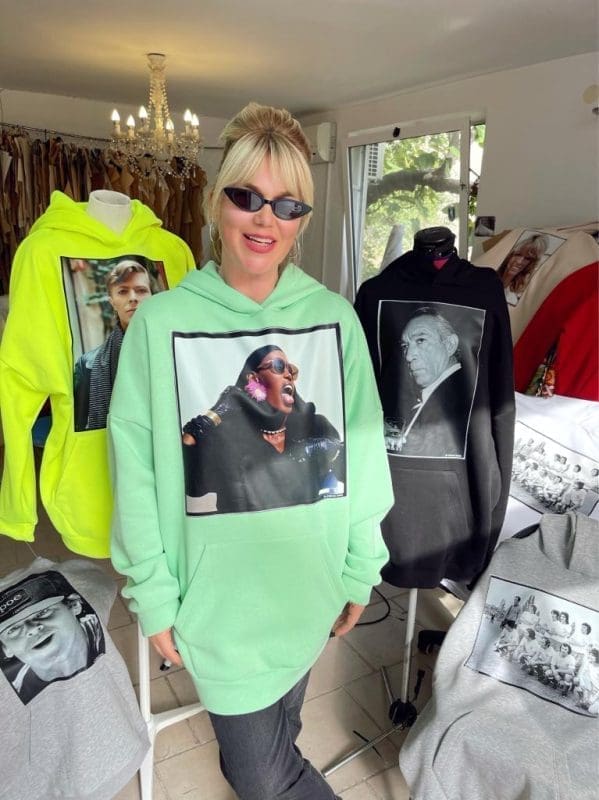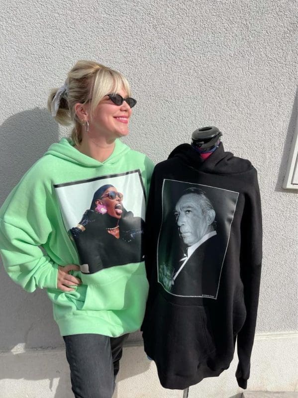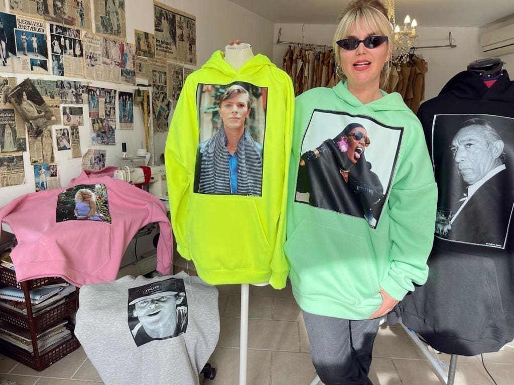 Nakon što je njezina ljetna kolekcija majica s Lazićevim portretima svjetskih celebova osvojila brojna domaća lica, sad nam se predstavlja s hoodicama na istu temu. Naime, i ovoga puta dizajnerica se poigrala s tridesetak fotografija iz zavidnog fundusa Jadrana Lazića na kojima su najveće zvijezde iz svijeta filma, glazbe i sporta poput Sofije Loren, Anthonyja Quina, Jack Nicholsona i legendarnih Hajdukovaca.