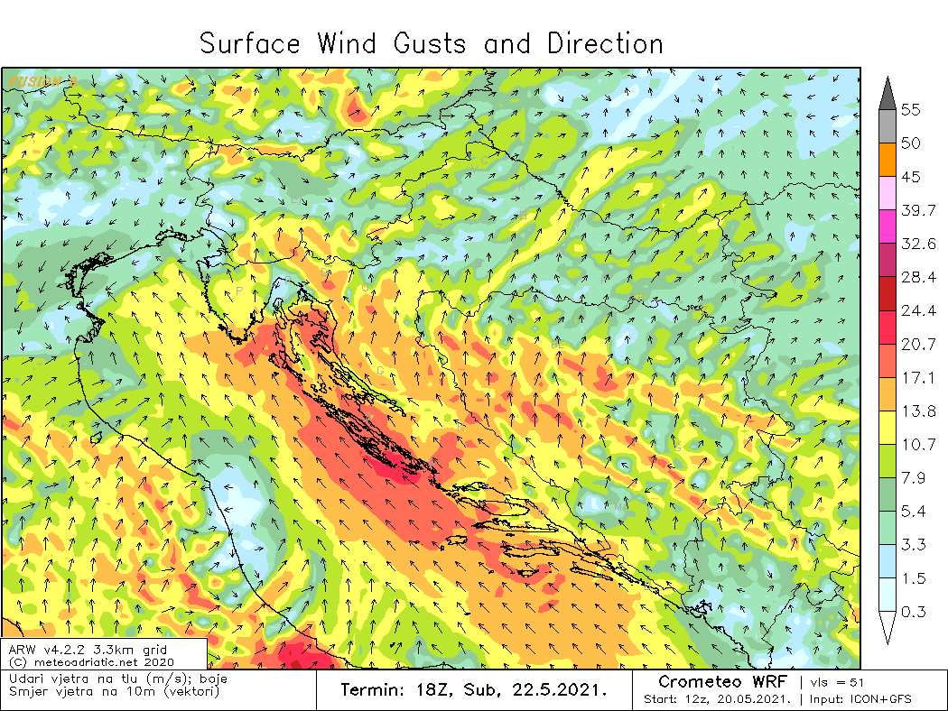Subota donosi djelomično sunčano vrijeme s promjenjivom naoblakom koja lokalno i prolazno može biti povećana. Zadržat će se suho, tek na krajnjem sjeveru Dalmacije može biti vrlo malo slabe kiše. Jugo će jačati cijeloga dana, ujutro će biti umjereno do pojačano, a popodne i navečer i jako, na moru su mogući olujni udari. Jutro toplije u odnosu na petak, najviše dnevne temperature zraka od 20 do 26°C.