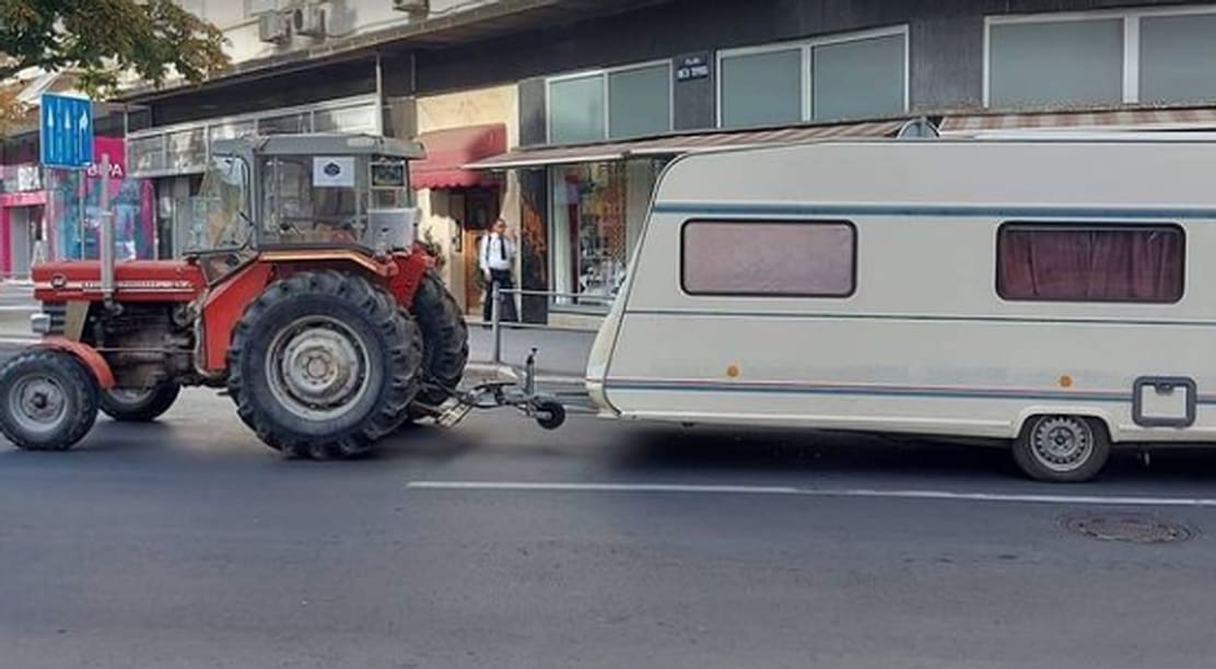Nije često slučaj da se traktorom po prometnici 'vuče' kamp kućica, a pogotovo je ovo zanimljivo i vjerojatno neviđena pojava u gradu podno Marjana.