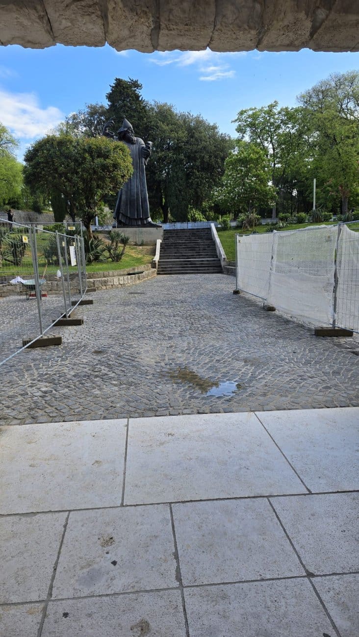 Dalmaciji Danas javio se jedan Splićanin iz Geta koji nam je poslao fotografije snimljene kod Zlatnih vrata, u blizini spomenika Grguru Ninskom. Na fotografijama se vidi manja nakupina vode koja se zadržala na kamenim kockama nakon kiše, a naš čitatelj upozorava da problem, kako tvrdi, i dalje nije riješen.