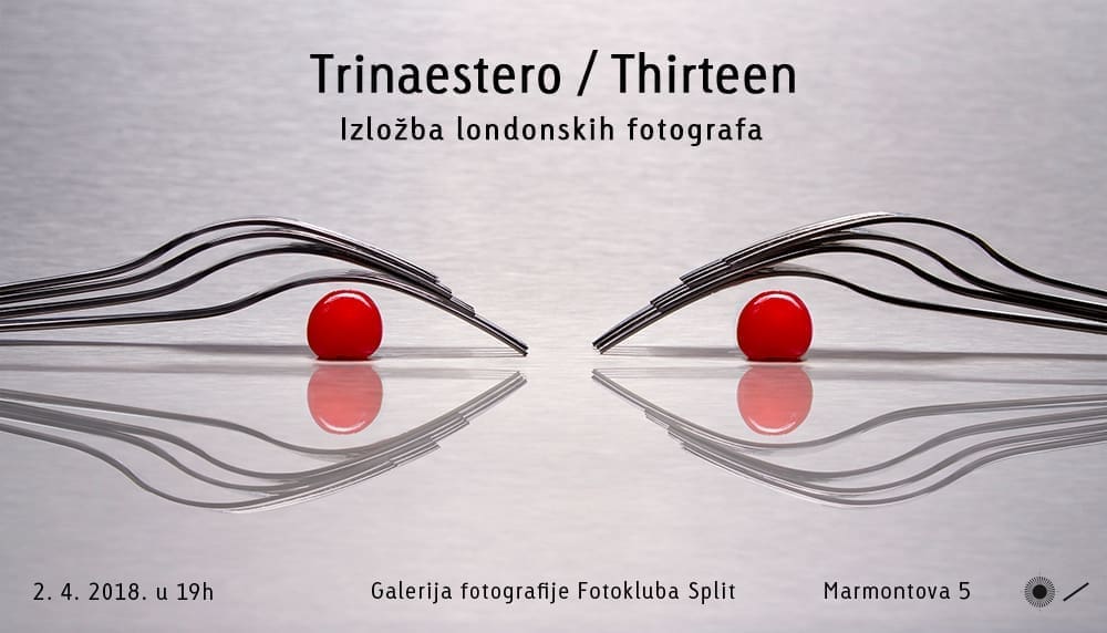 U ponedjeljak, 2.4.2018. u 19 h, u Galeriji fotografije Fotokluba Split otvara se izložba pod nazivom "Thirteen / Trinaestero".
