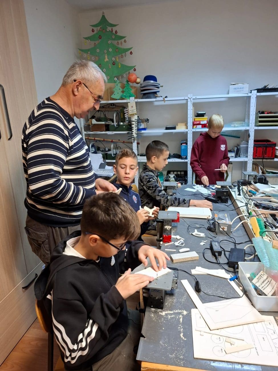 Radionicu modelarstva, namijenjenu učenicima viših razreda osnovne škole, vodit će Martin Olujić, predsjednik Zajednice tehničke kulture grada Splita i član Društva pedagoga tehničke kulture Split. Učenici će izrađivati uporabne predmete od lagane šperploče, ručno i uz pomoć strojeva prilagođenih njihovoj dobi, pritom usvajajući osnovne vještine obrade drva i sigurnog rukovanja alatima.