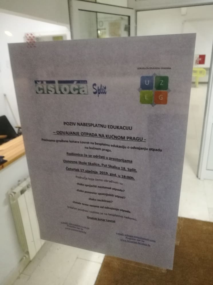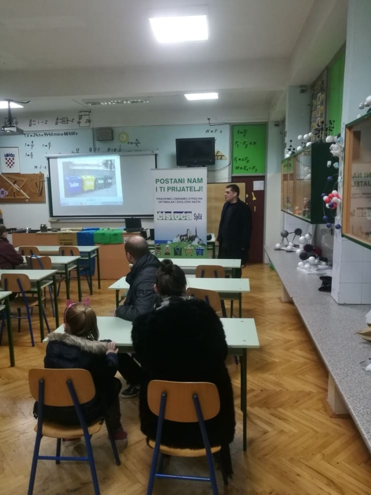 U organizaciji gradskog kotara Lovret, tvrtke Čistoća d.o.o. Split i Osnovne škole Skalice u prostorijama OŠ Skalice održana je 21. edukacija o odvajanju otpada na kućnom pragu.