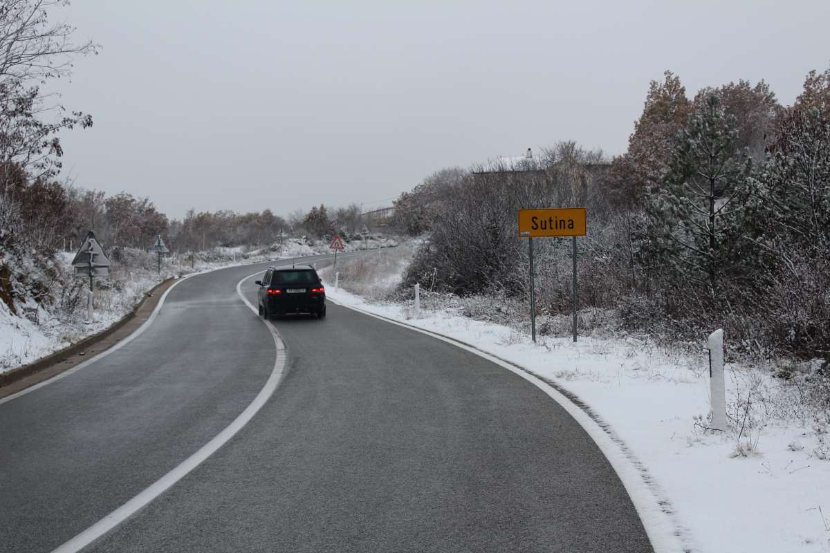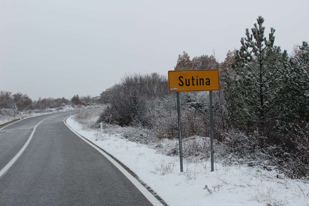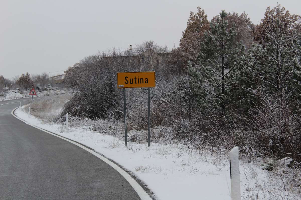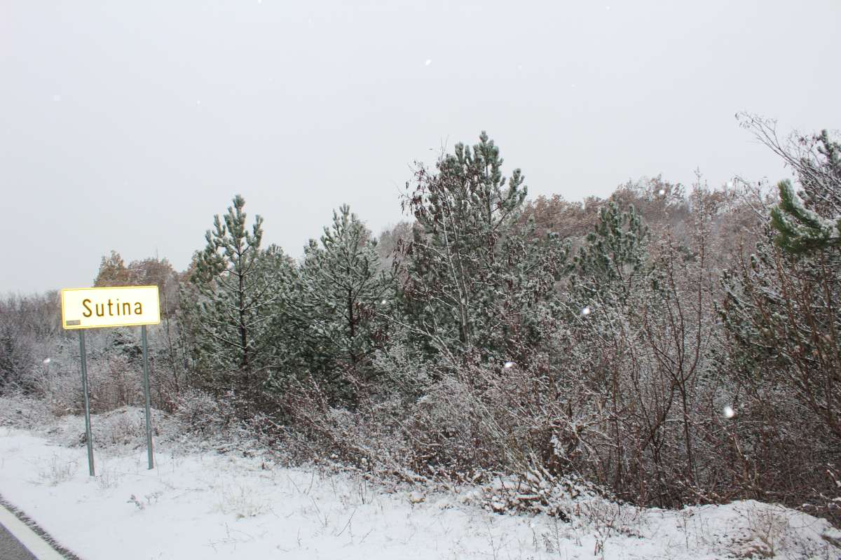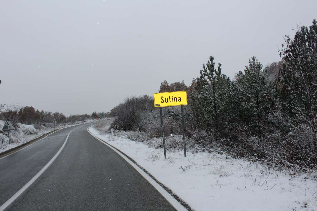 Uhvatilo se tek par centimetara, a onda smo nakon desetak minuta nastavili do Sutine, mjestu u sastavu Općine Muć. Tu se snijeg također već uhvatio, padao je lagano, kao i u Lučanima. I tu smo se zaustavili...