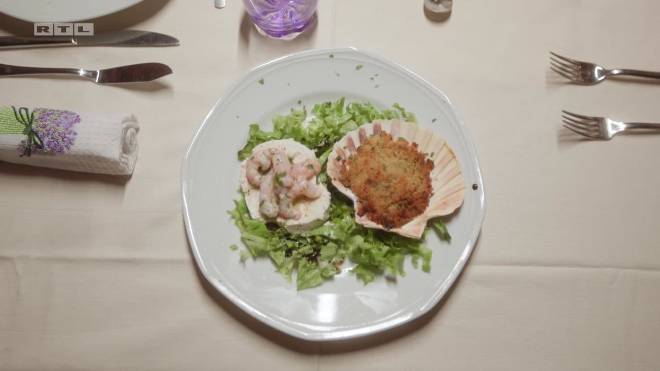 Gosti su se smjestili za stol, a Lučano im je poslužio predjelom, koje je goste oduševilo jako izgledom, tako i okusom. Gordana je ostala impresionirana ponajviše time kako je dobro domaćin u predjelo ukomponirao kutu pa joj u ovom jelu nije smetala, a inače ju ne voli. „Predjelo je bilo jako dobar početak cijele naše 'Večere za 5'“, zaključila je Olga.