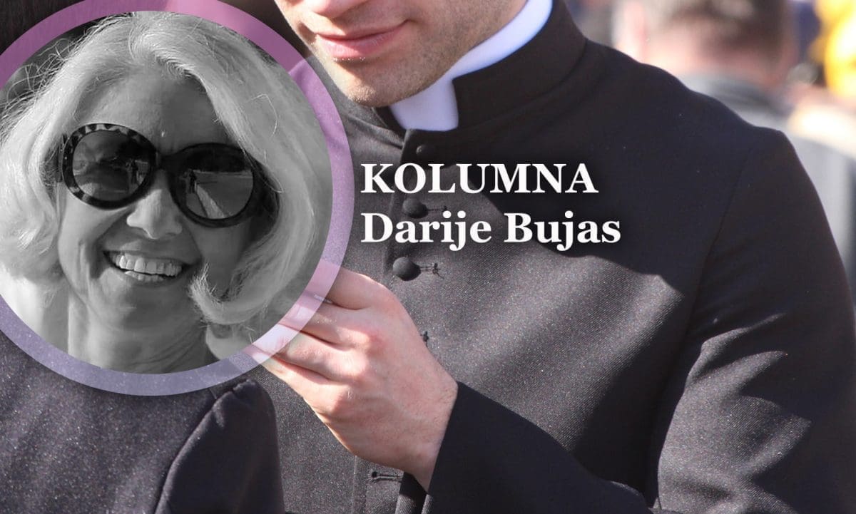 -Izvolite don Luka, sjedite ovdje pored moje kćeri.-Ma nu ti moje matere i književni zna. Okrenem se, a iza mene visoki zgodan muškarac, obučen po posljednjoj modi. Prije bih rekla da je političar i to na vlasti, a ne pop. Pa gdje mu je liturgijsko ruho, gdje mu je bijela traka oko vrata, on u Bosovom ili kojem već odjelu, e sad mi je jasno zašto su se udovice ovako zauzele.