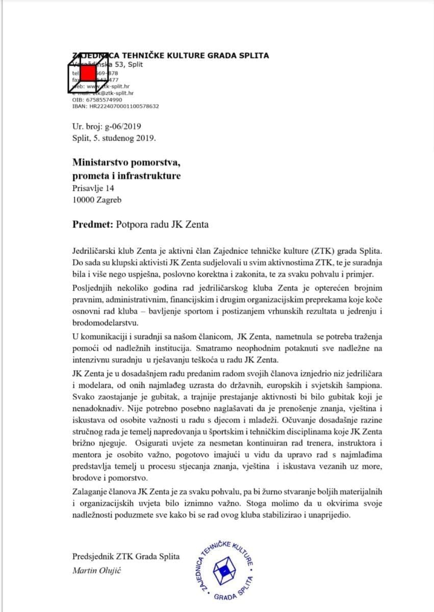 – S obzirom na brojne probleme i nezakonitosti koji se događaju na području sportske luke Zenta u Splitu, a koja je temeljem uredbe o razvrstaju luka otvorenih za javni promet i luka posebne namjene (Narodne novine, broj, 110/04, 82/07) pod Vašom nadležnošću, ovim putem Vas molimo na ubrzano postupanje te donošenje Odluke o davanju Lučkoj upravi Splitsko-dalmatinske županije na privremeno upravljanje i korištenje lučkog područja luke posebne namjene – sportske luke Zenta kako bi se privremeno reguliralo upravljanje i korištenje spomenute sportske luke te krenulo s pripremanjem zakonskih uvjeta za pokretanje postupka davanja koncesije na pomorskom dobru - navodi se u dopisu nadležnom ministarstvu koji potpisuje privremeni pročelnik UO za turizam i pomorstvo SDŽ Stipe Čogelja pozivajući se na sličan slučaj marine Ramova o kojem smo već pisali.