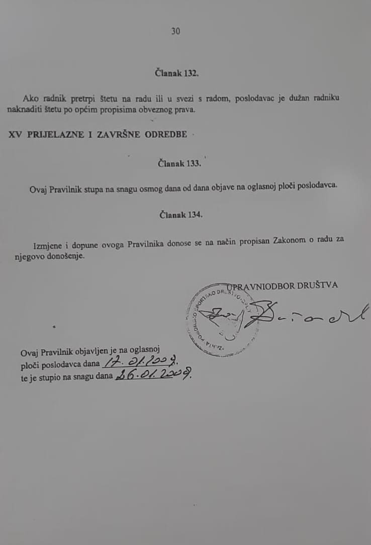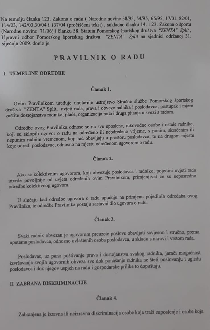 - Poziva se na Pravilnik o radu koji je jedan smiješan dokumenat s nekakvim faraonskim ovlastima, ali one ne mogu biti iznad Statuta Društva, jer je Pravilnik o radu akt Upravnog odbora, a Statut akt Skupštine, prema tome svi pravilnici moraju biti u okvirima onog što Statut propisuje. Interesantno je da na njemu piše da je donešen 31. siječnja 2009., a stupio na snagu 26. siječnja 2009., znači stupio je na snagu prije nego je donešen. Potpisao ga je i ovjerio pečatom društva sam tajnik i donosi ga na sudove, pokazuje policiji i slično. I to mu prolazi – objašnjava Dominović.