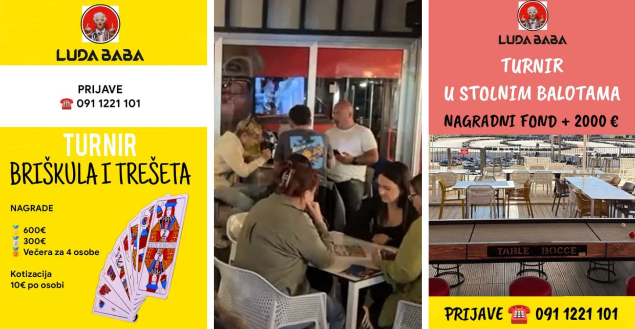 Popularna društvena destinacija Luda Baba sa splitskog TTTS-a ponovno diže atmosferu na višu razinu i poziva sve ljubitelje zabave, igre i natjecanja na dva uzbudljiva turnira – u stolnim balotama te briškuli i trešeti u parovima. Očekuje se velika zainteresiranost, a broj prijava je strogo ograničen pa organizatori savjetuju da se ekipe prijave što prije.