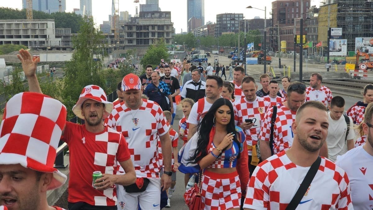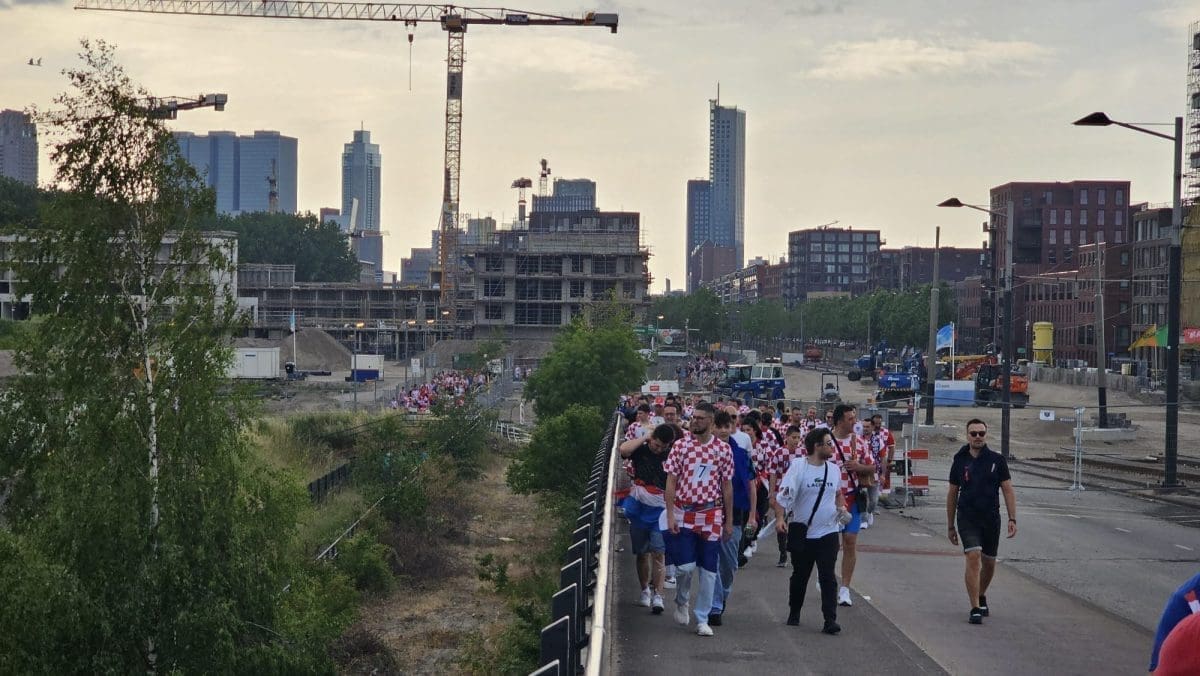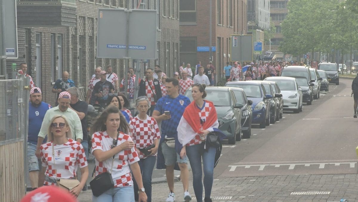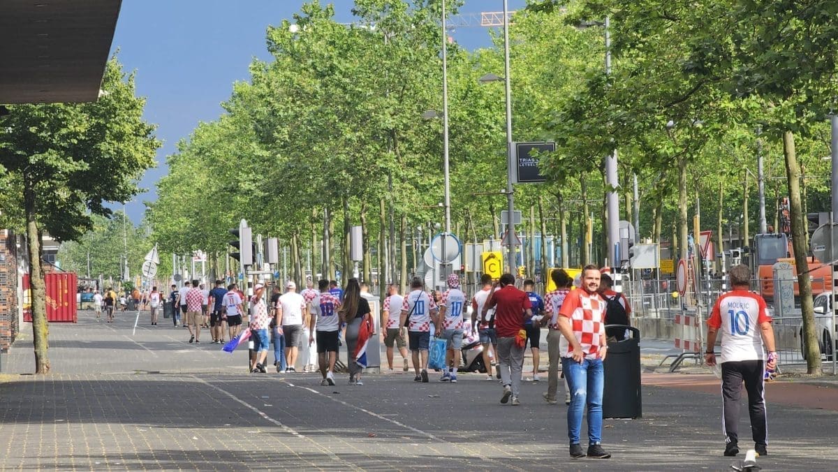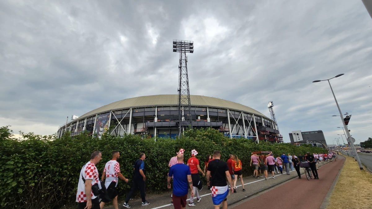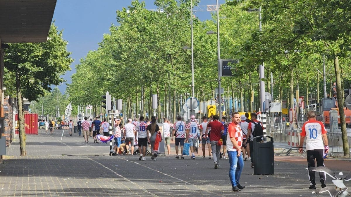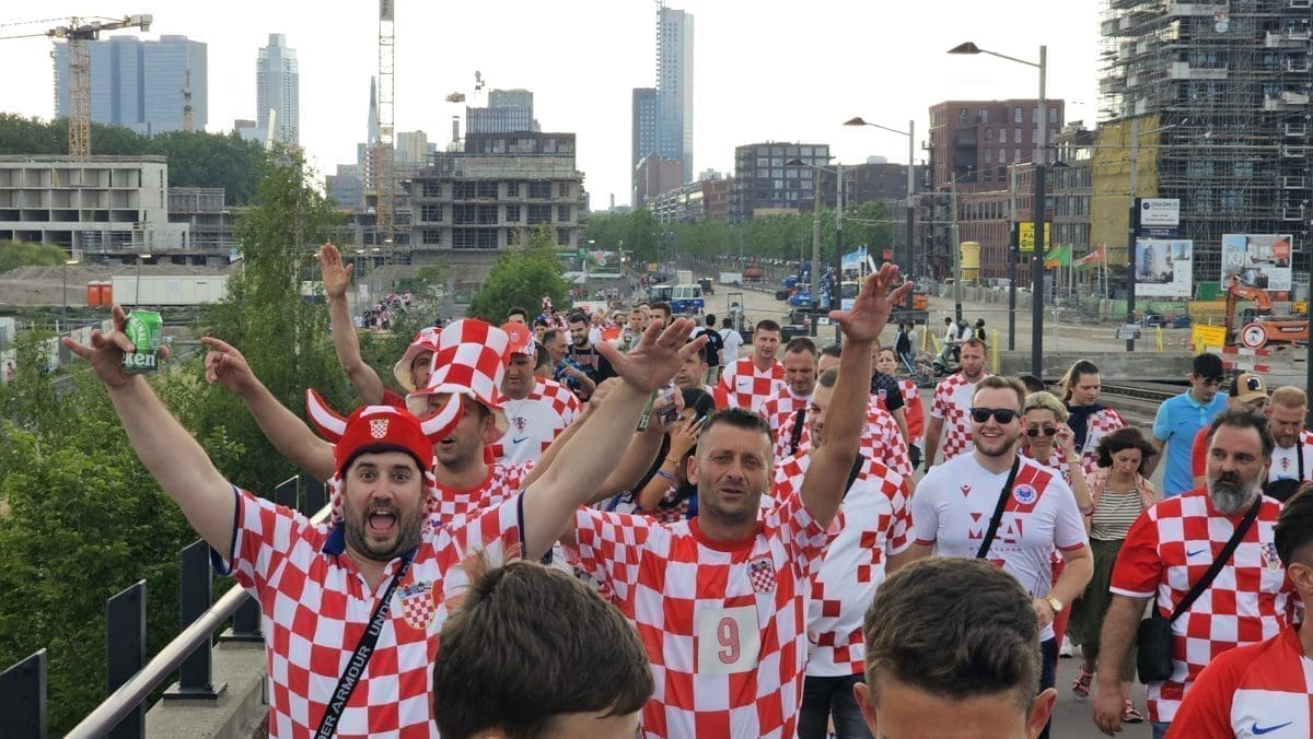 Ispred stadiona De Kuip u Rotterdamu vlada ludilo atmosfera koja je samo nastavak energične zabave koju hrvatski navijači kultiviraju već od ranog jutra.
