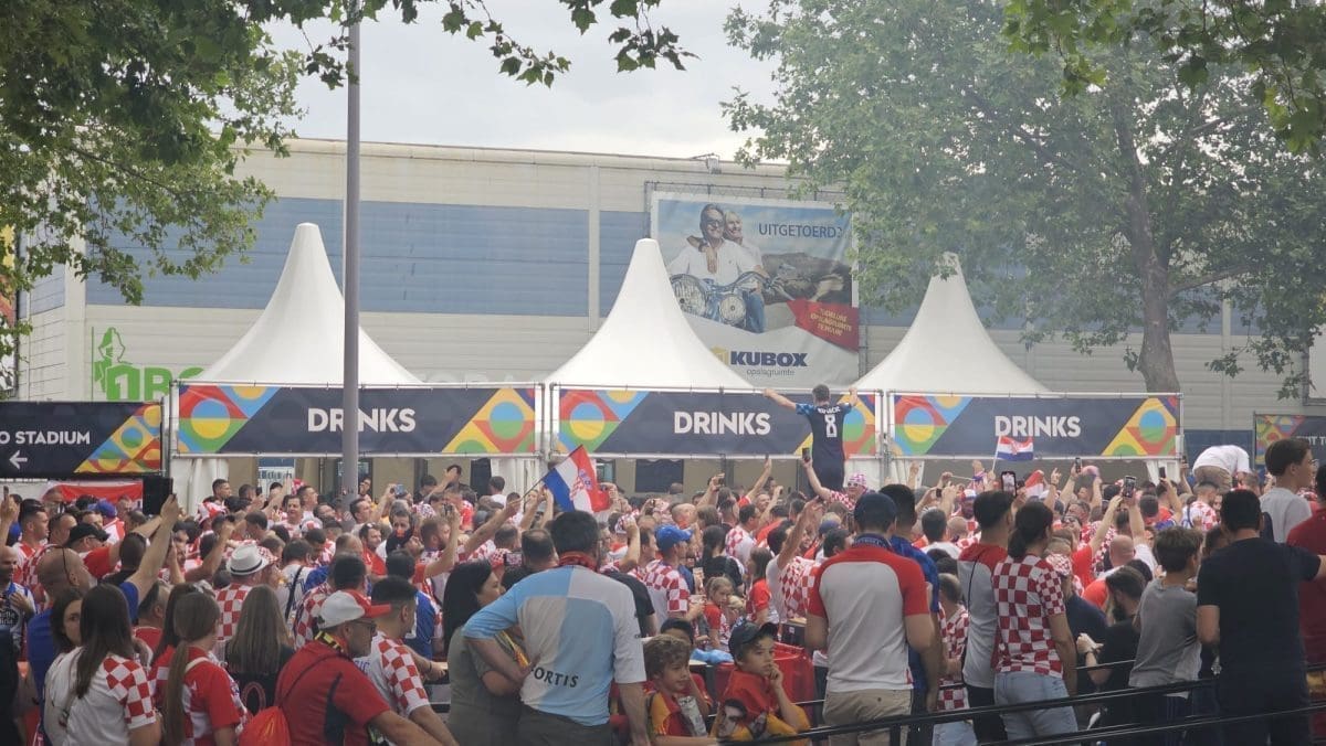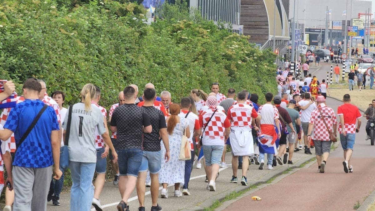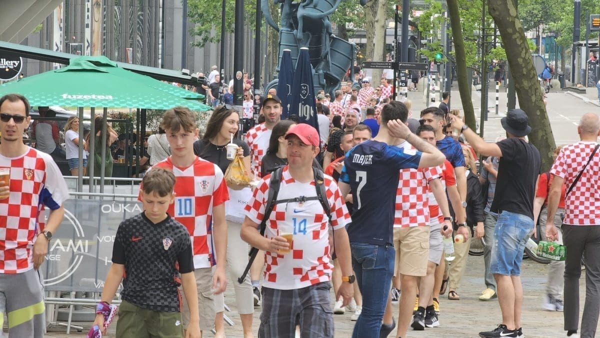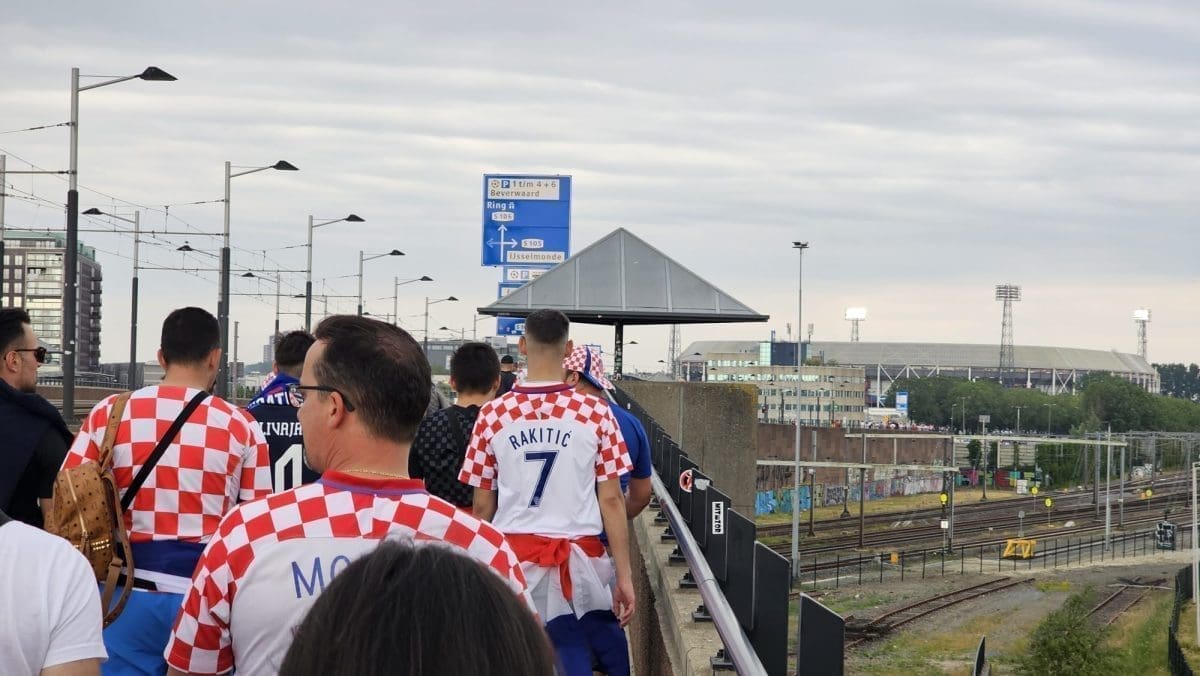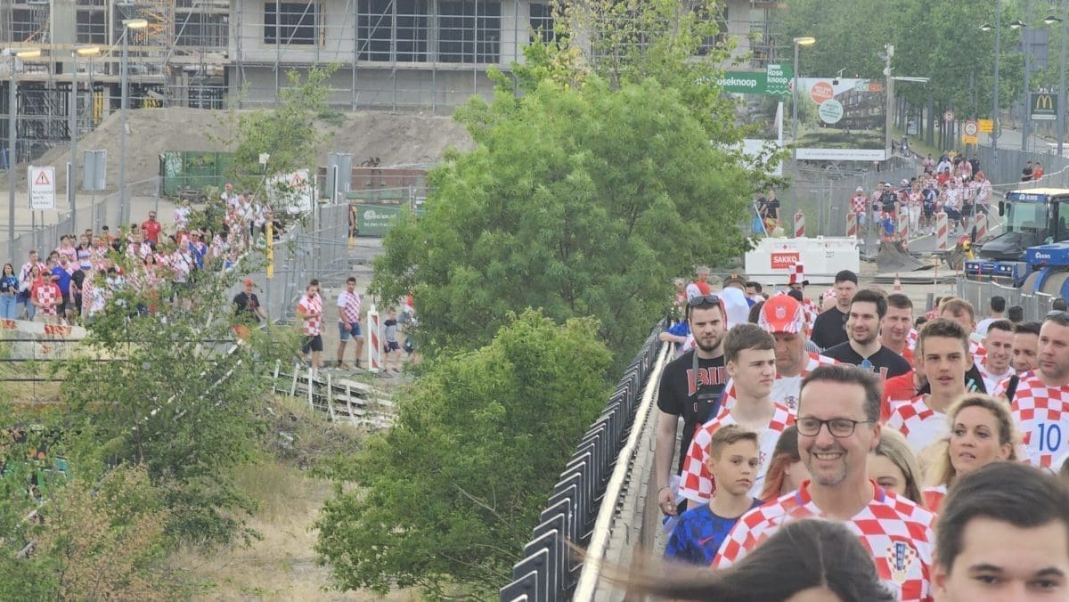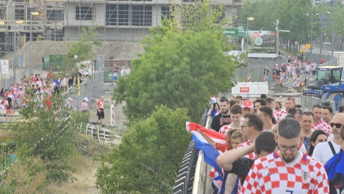 Ispred stadiona De Kuip u Rotterdamu vlada ludilo atmosfera koja je samo nastavak energične zabave koju hrvatski navijači kultiviraju već od ranog jutra.