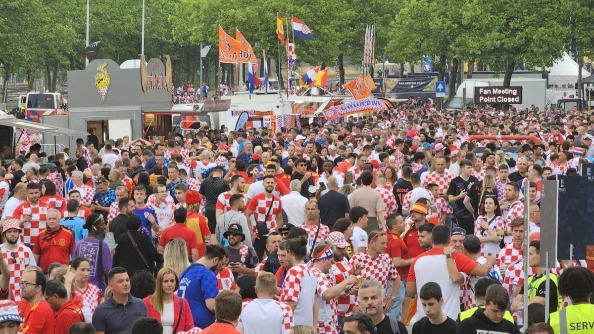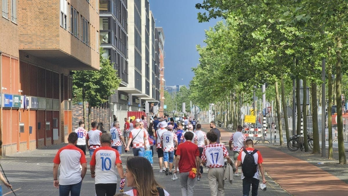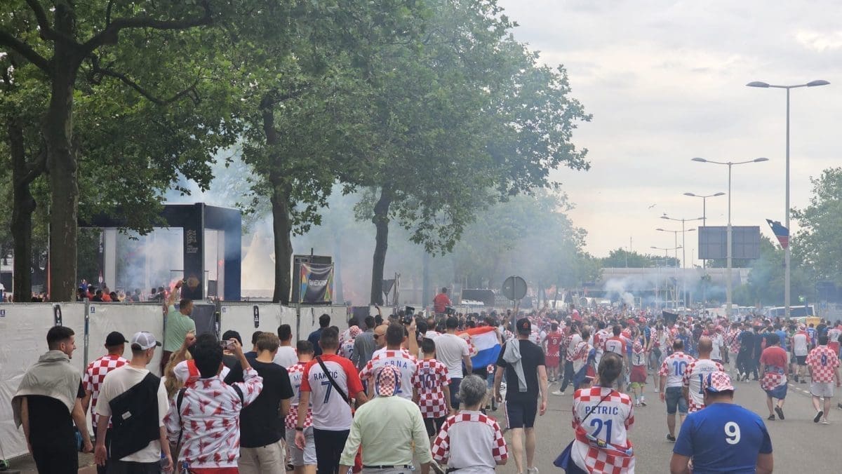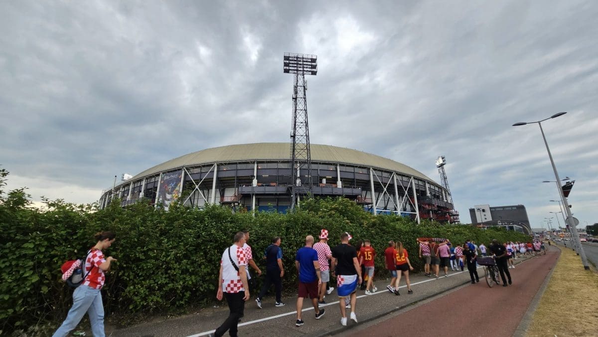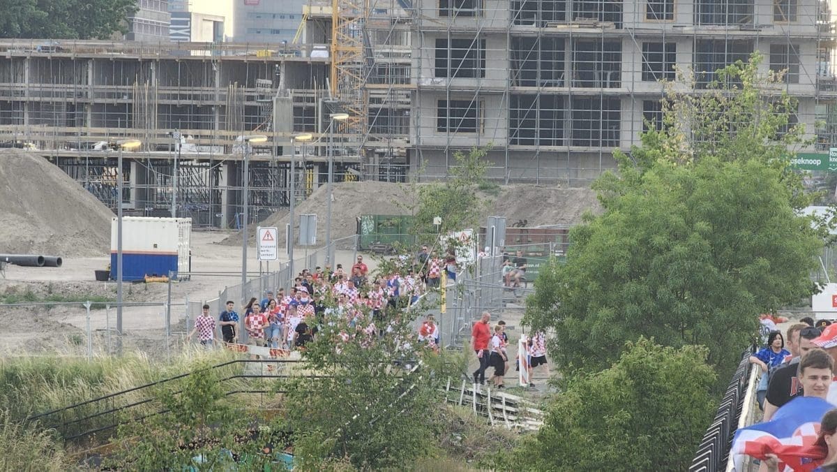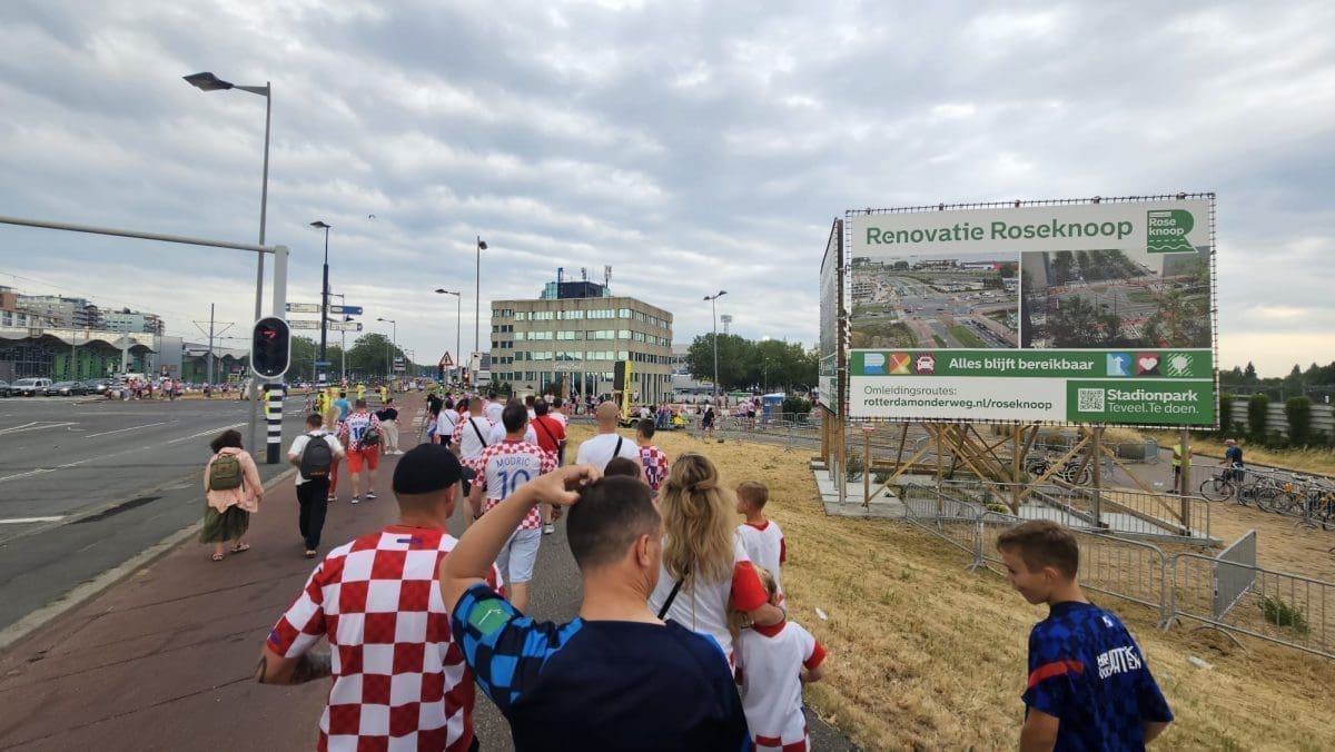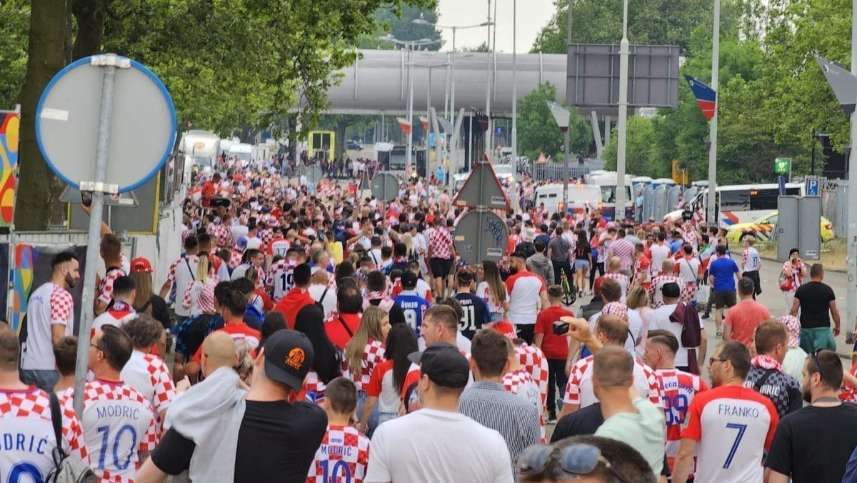 Ispred stadiona De Kuip u Rotterdamu vlada ludilo atmosfera koja je samo nastavak energične zabave koju hrvatski navijači kultiviraju već od ranog jutra.