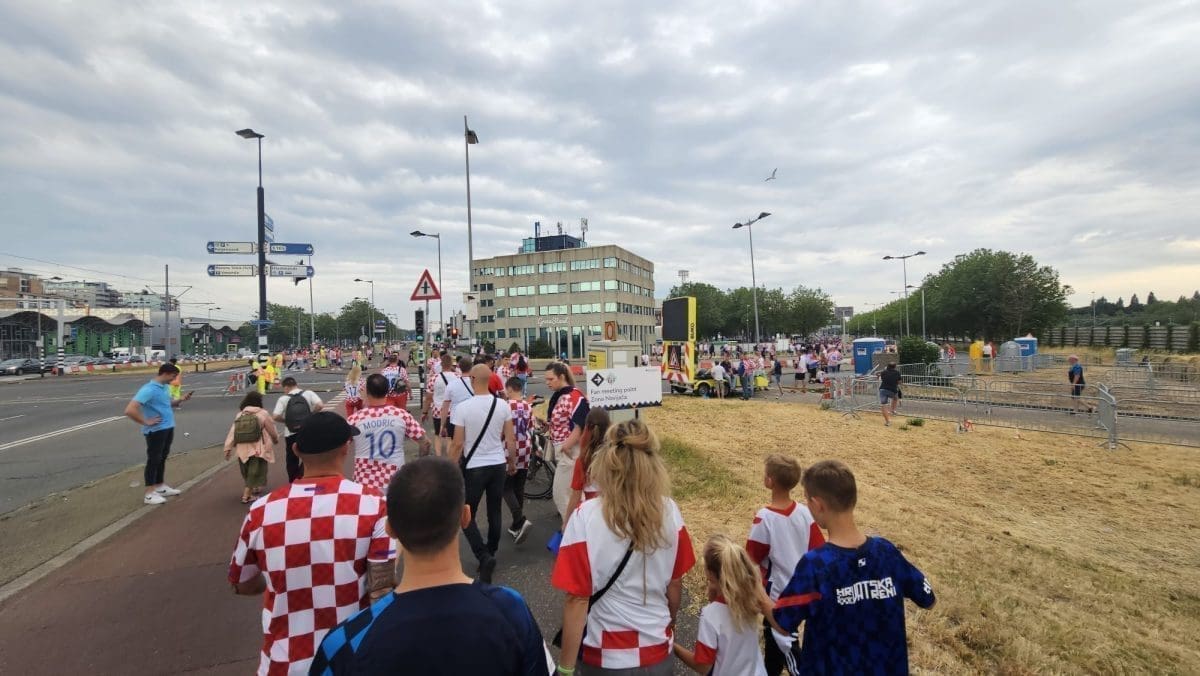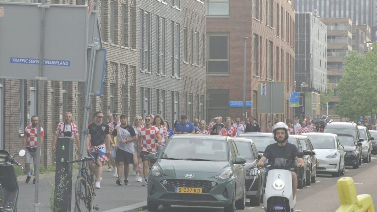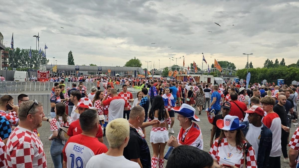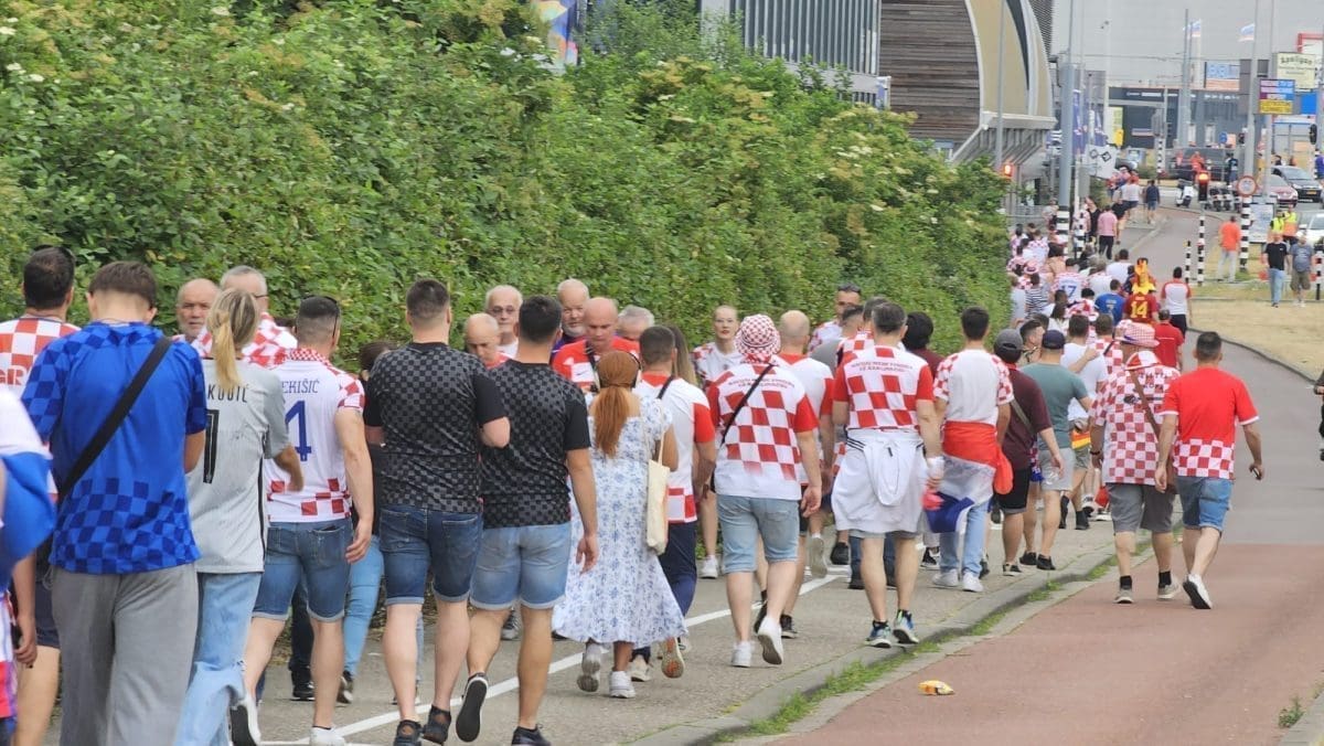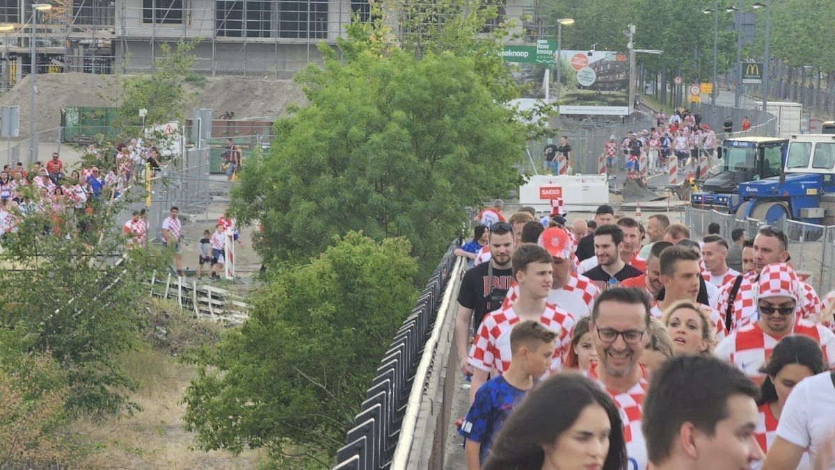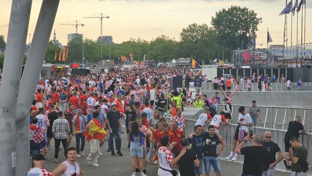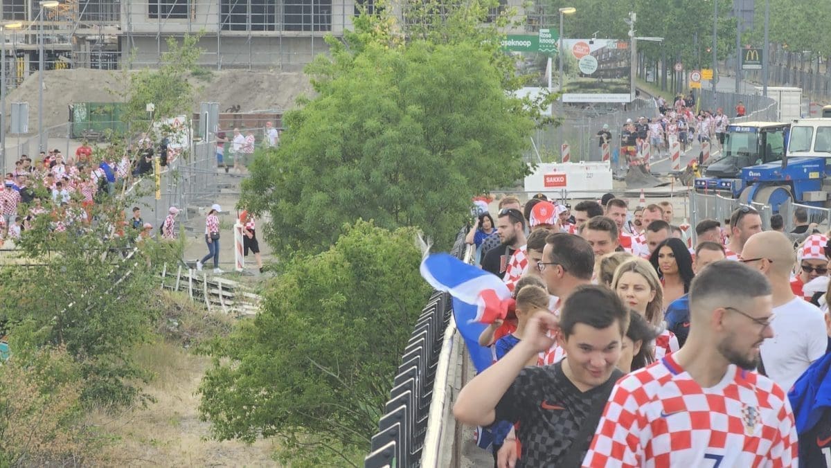 Ispred stadiona De Kuip u Rotterdamu vlada ludilo atmosfera koja je samo nastavak energične zabave koju hrvatski navijači kultiviraju već od ranog jutra.
