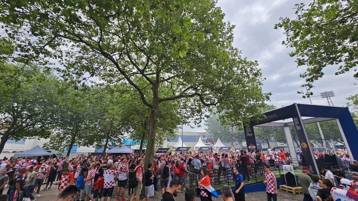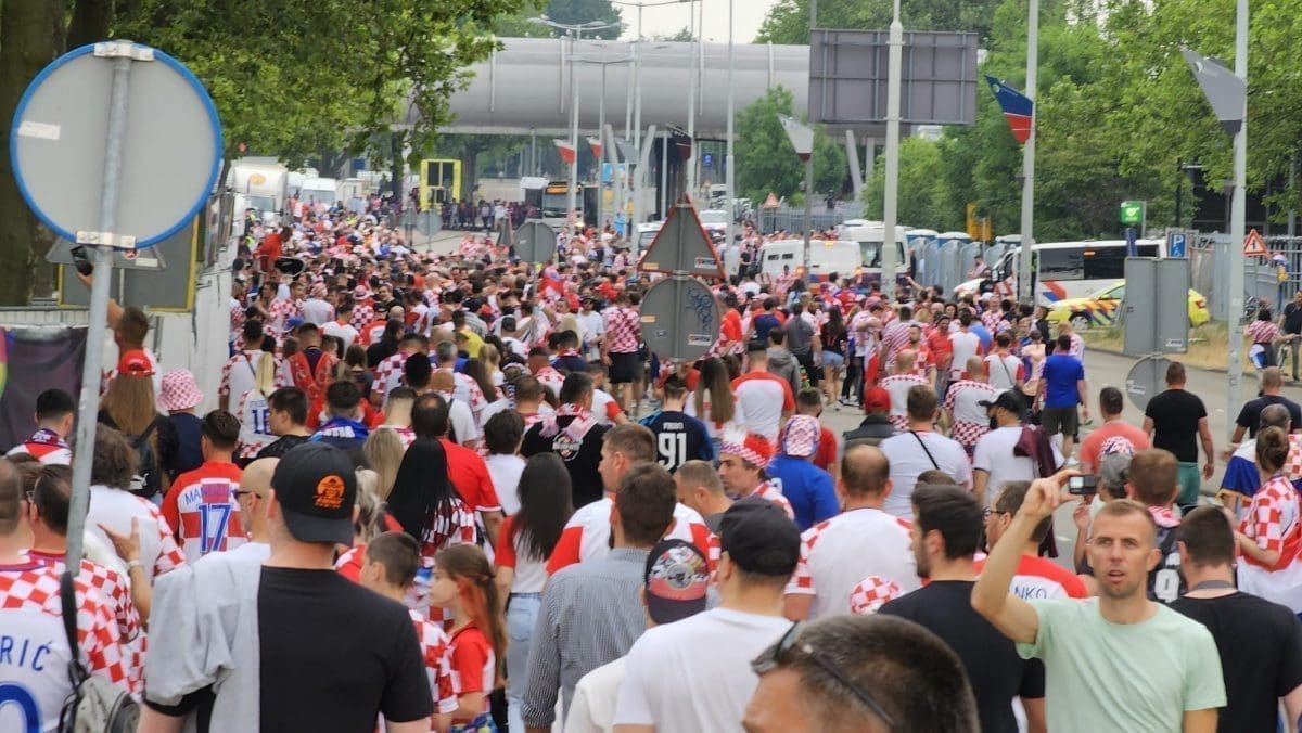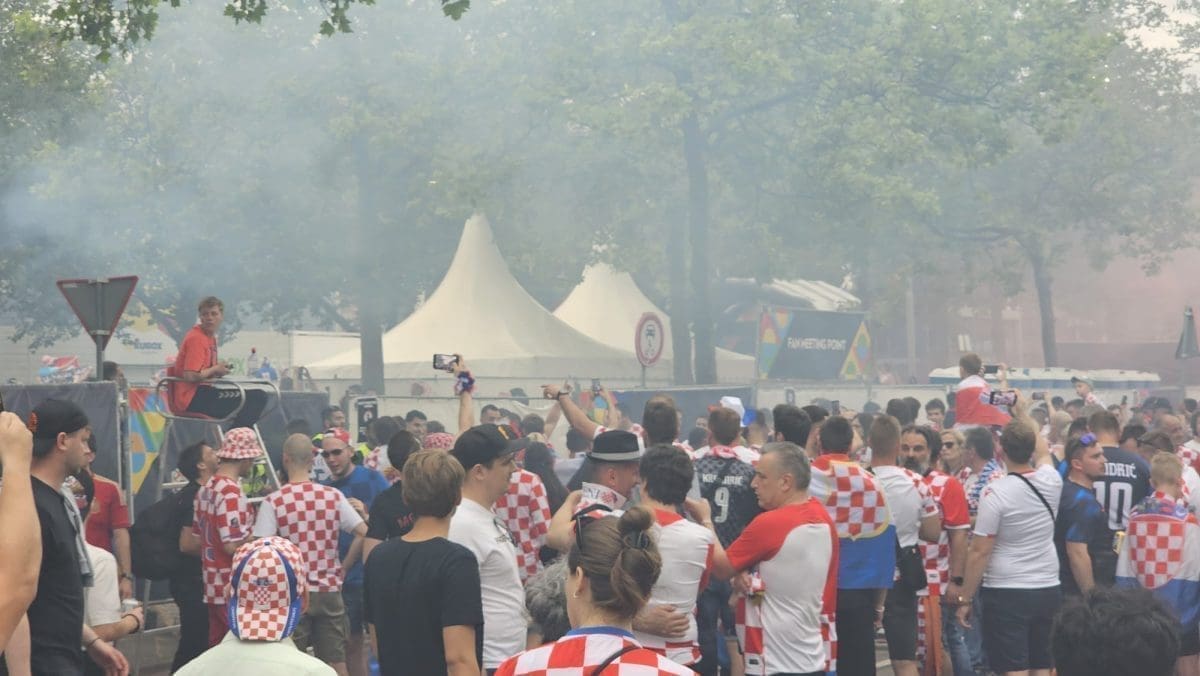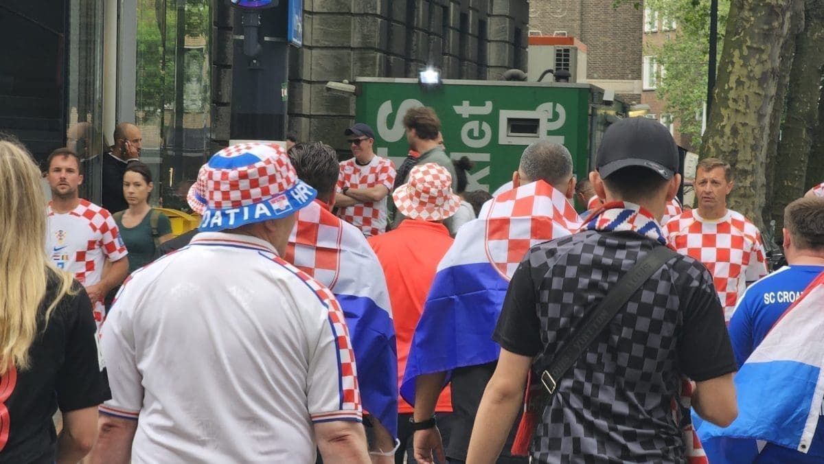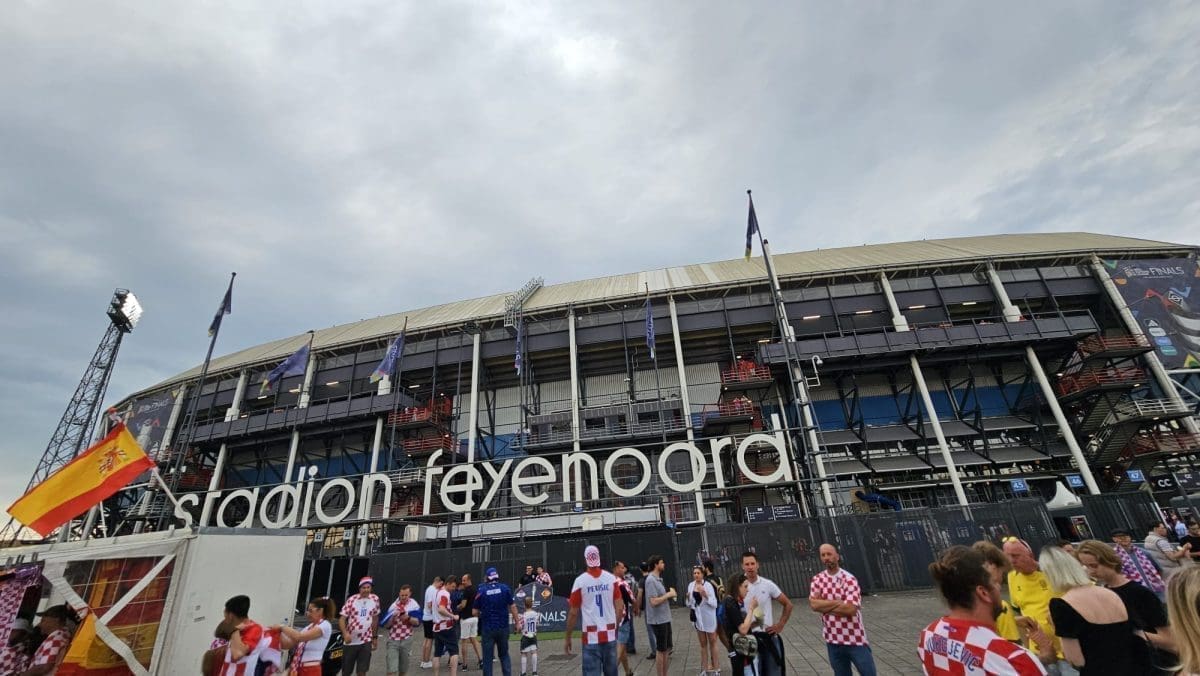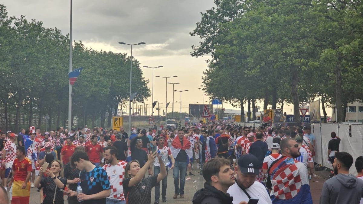 Ispred stadiona De Kuip u Rotterdamu vlada ludilo atmosfera koja je samo nastavak energične zabave koju hrvatski navijači kultiviraju već od ranog jutra.