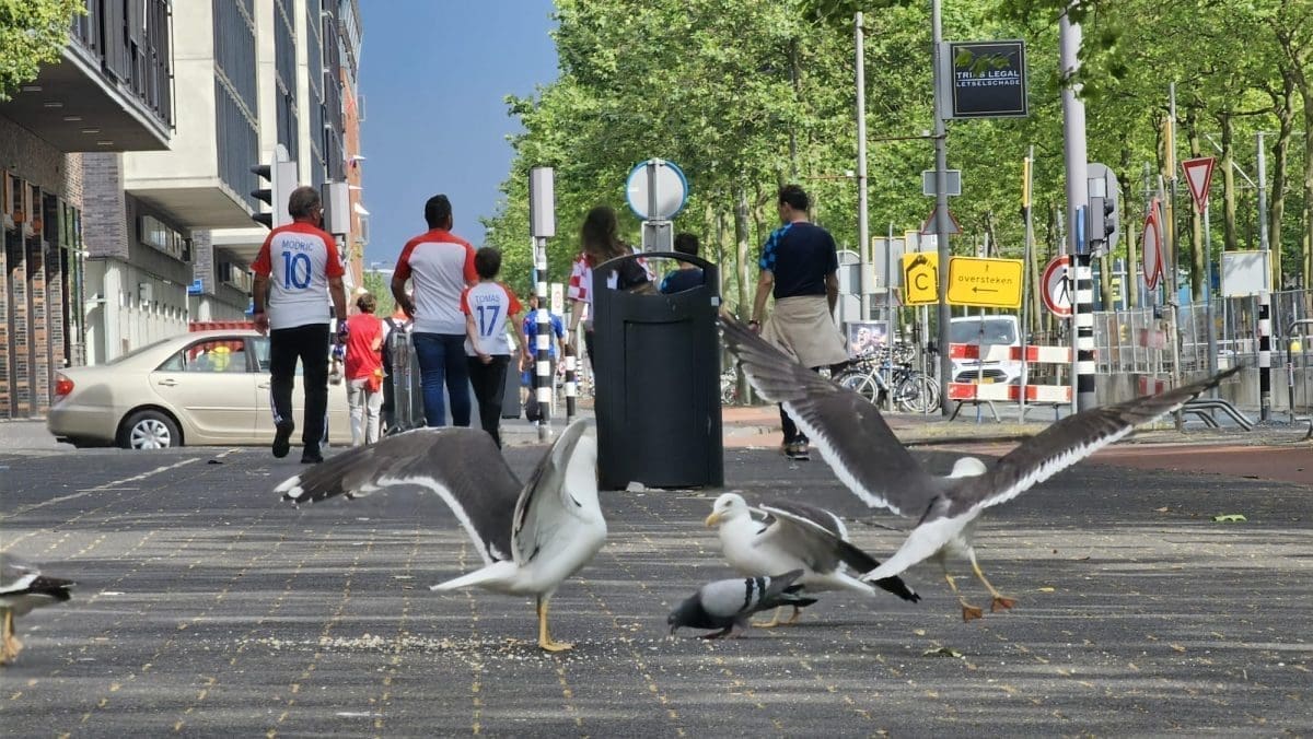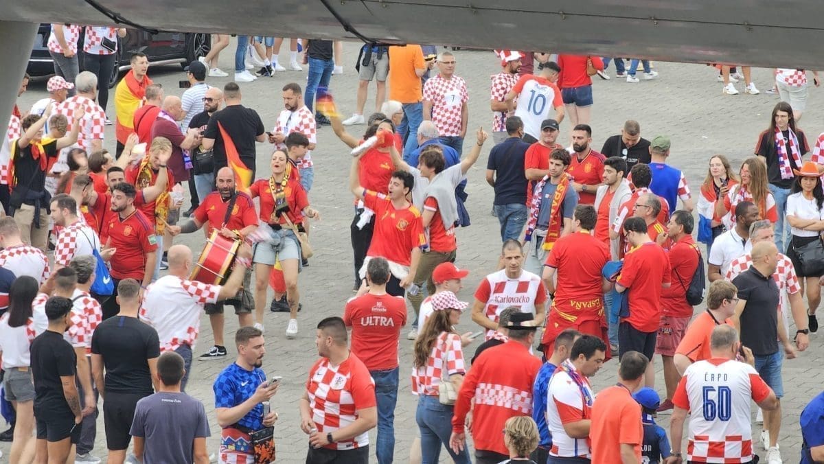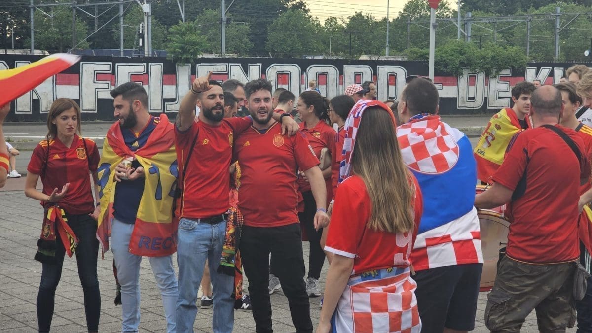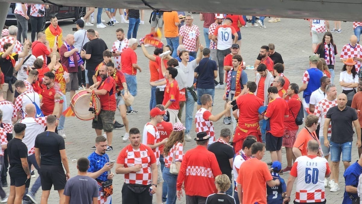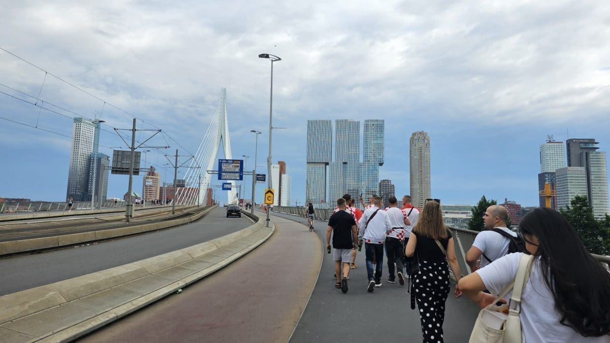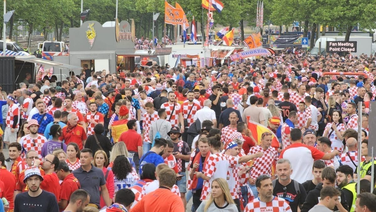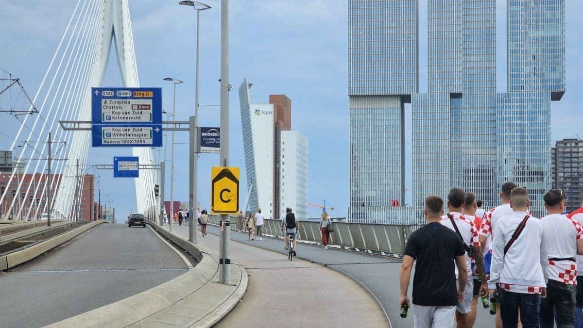 Ispred stadiona De Kuip u Rotterdamu vlada ludilo atmosfera koja je samo nastavak energične zabave koju hrvatski navijači kultiviraju već od ranog jutra.