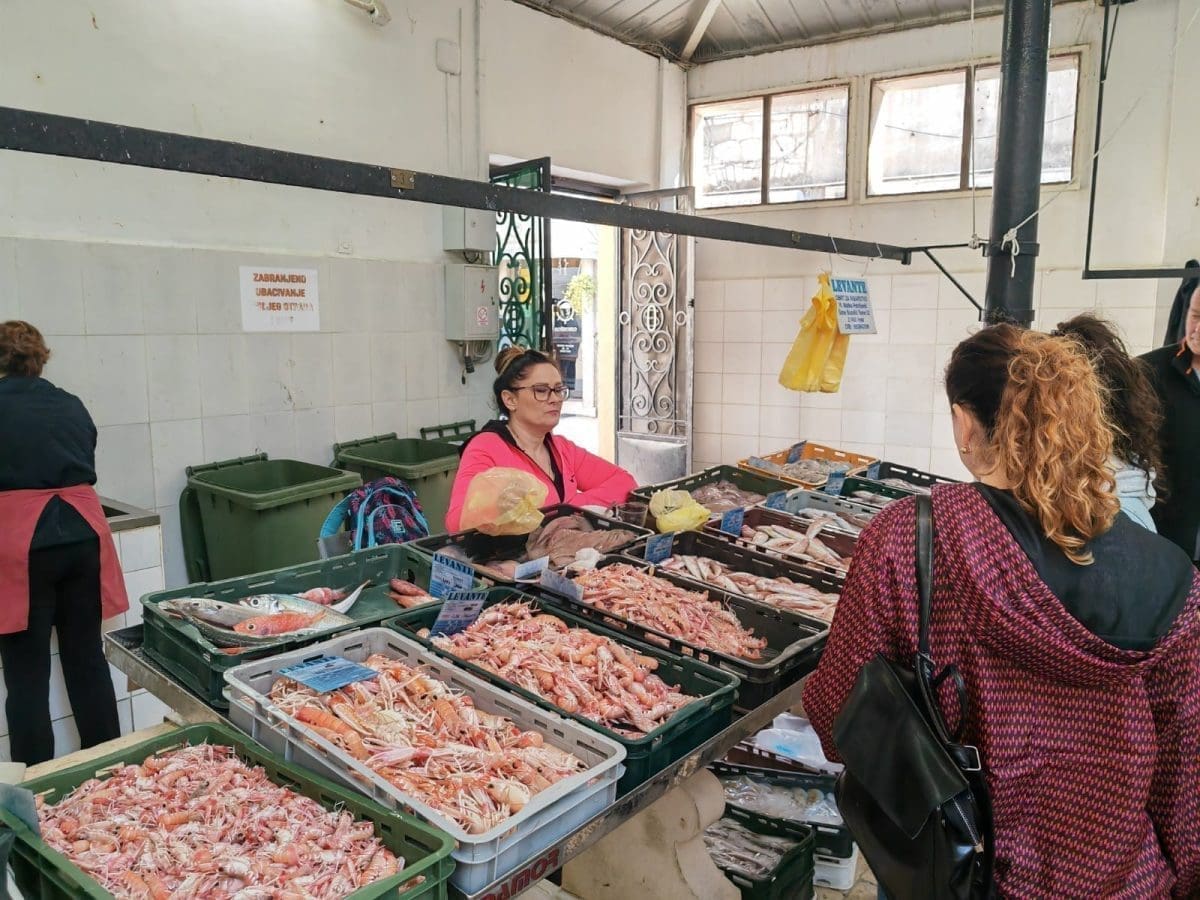 "Ima gofa na fete. Škarpine, ima za svačji džep... Moli s parangala su sada 13-14 eura, škarpine su poskupile pa cu sad, ove veće, 35-40 eura, a manje 20 eura. Ima škampa to je između 25 i 40 eura, Uzgoj standardno 10 eura..", govori nam Siniša o ranojutarnjim cijenama na Peškariji.