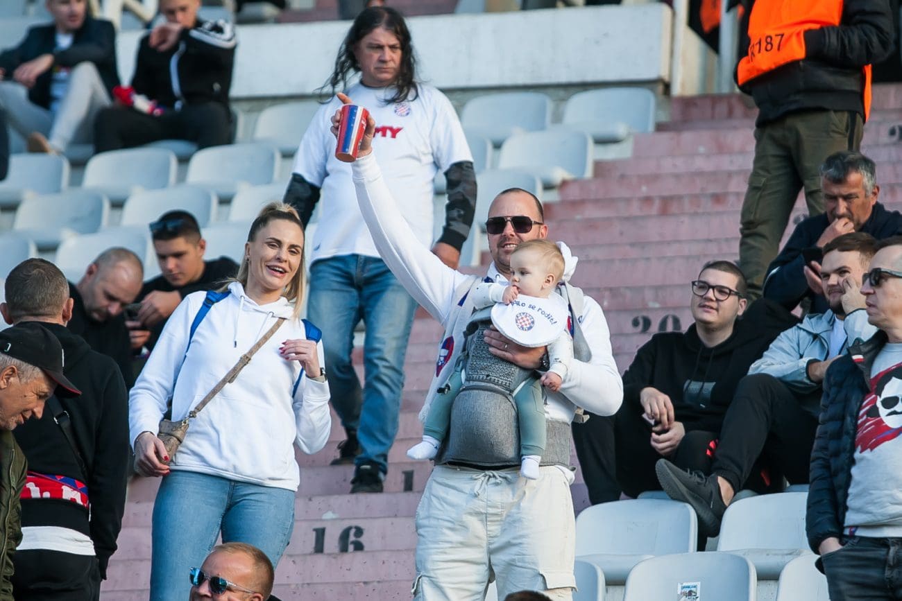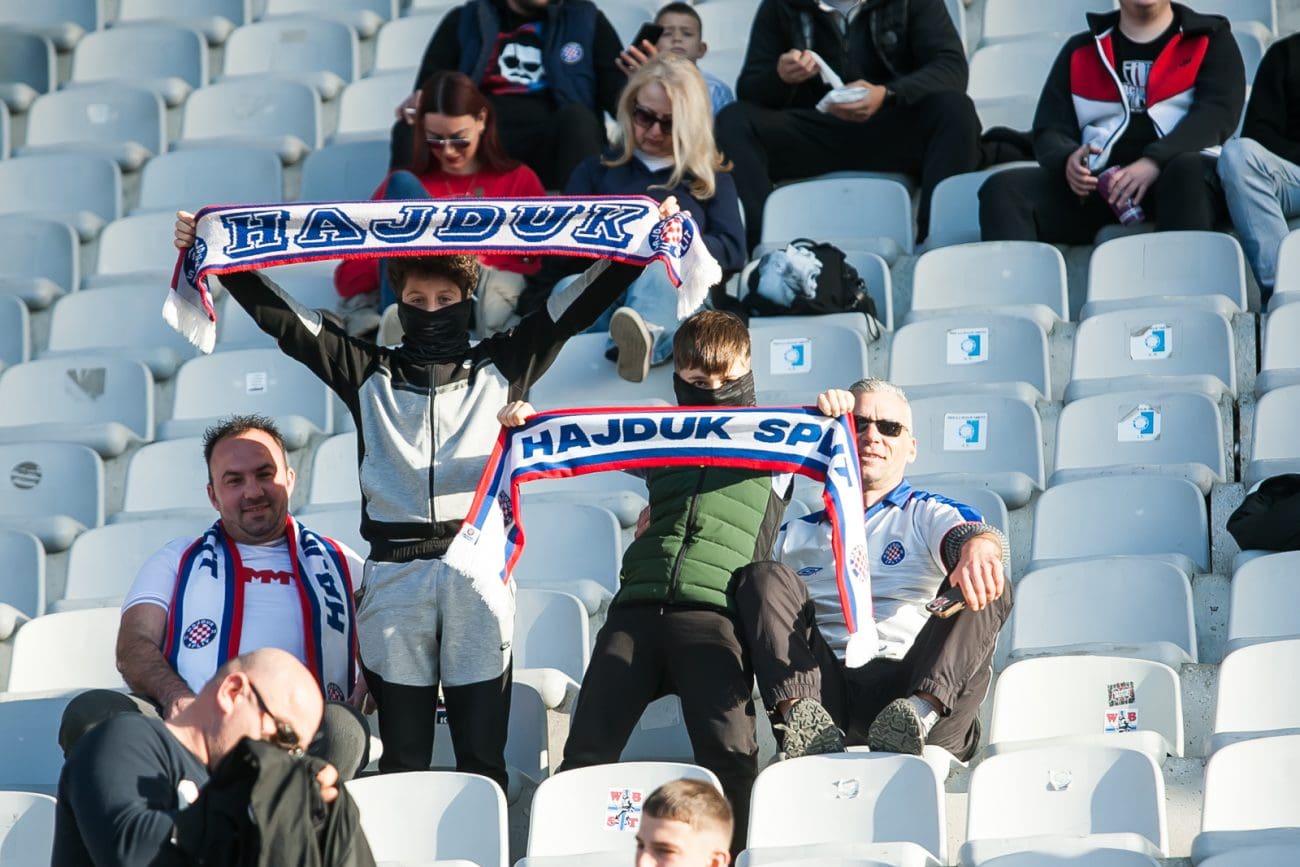 Već satima prije početka utakmice prilazi Poljudu bili su ispunjeni bijelim dresovima, zastavama i pjesmom. Navijači su stizali iz svih dijelova Dalmacije. Tko je sve na tribinama pogledajte u fotogaleriji Renata Pezzija.