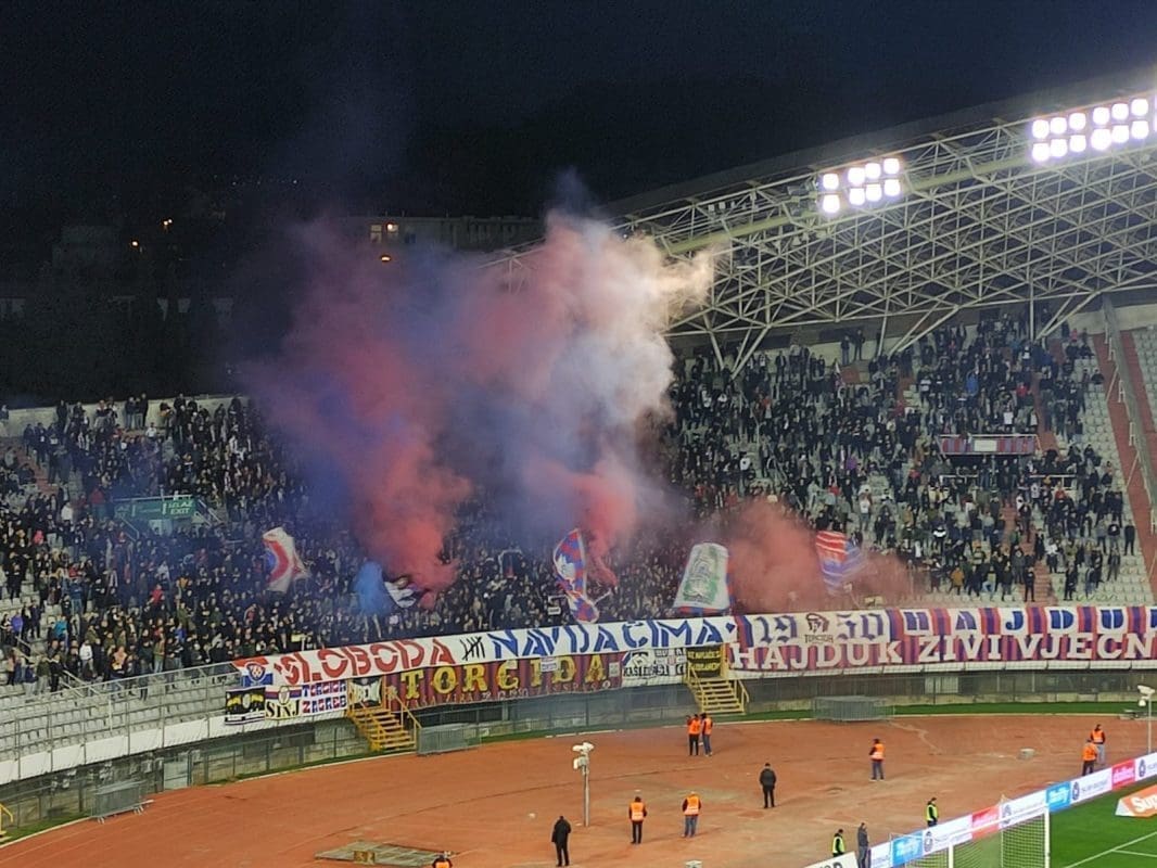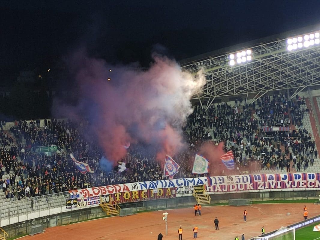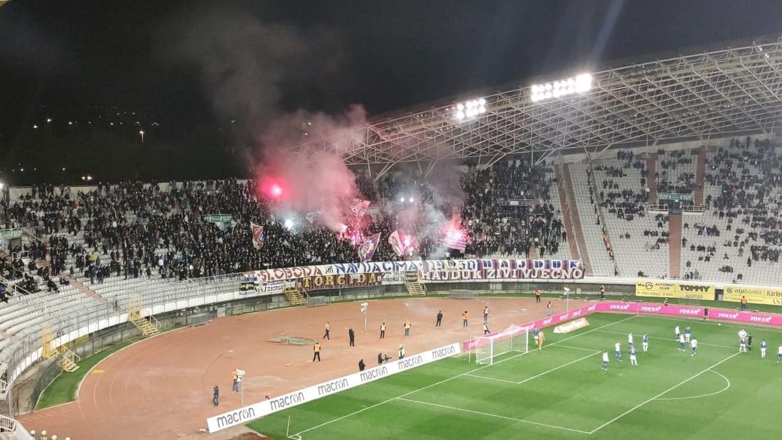 Torcida je u 70. minuti utakmice za sjeveru zapalila baklje.