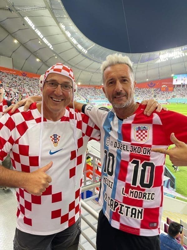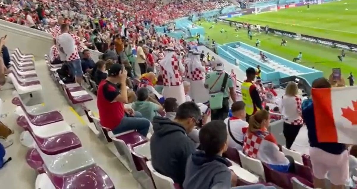 Prije utakmice izvrsna je atmosfera na stadionu u Dohi. Hrvatski navijači su veseli i pjevaju iz svega glasa navijačke pjesme.