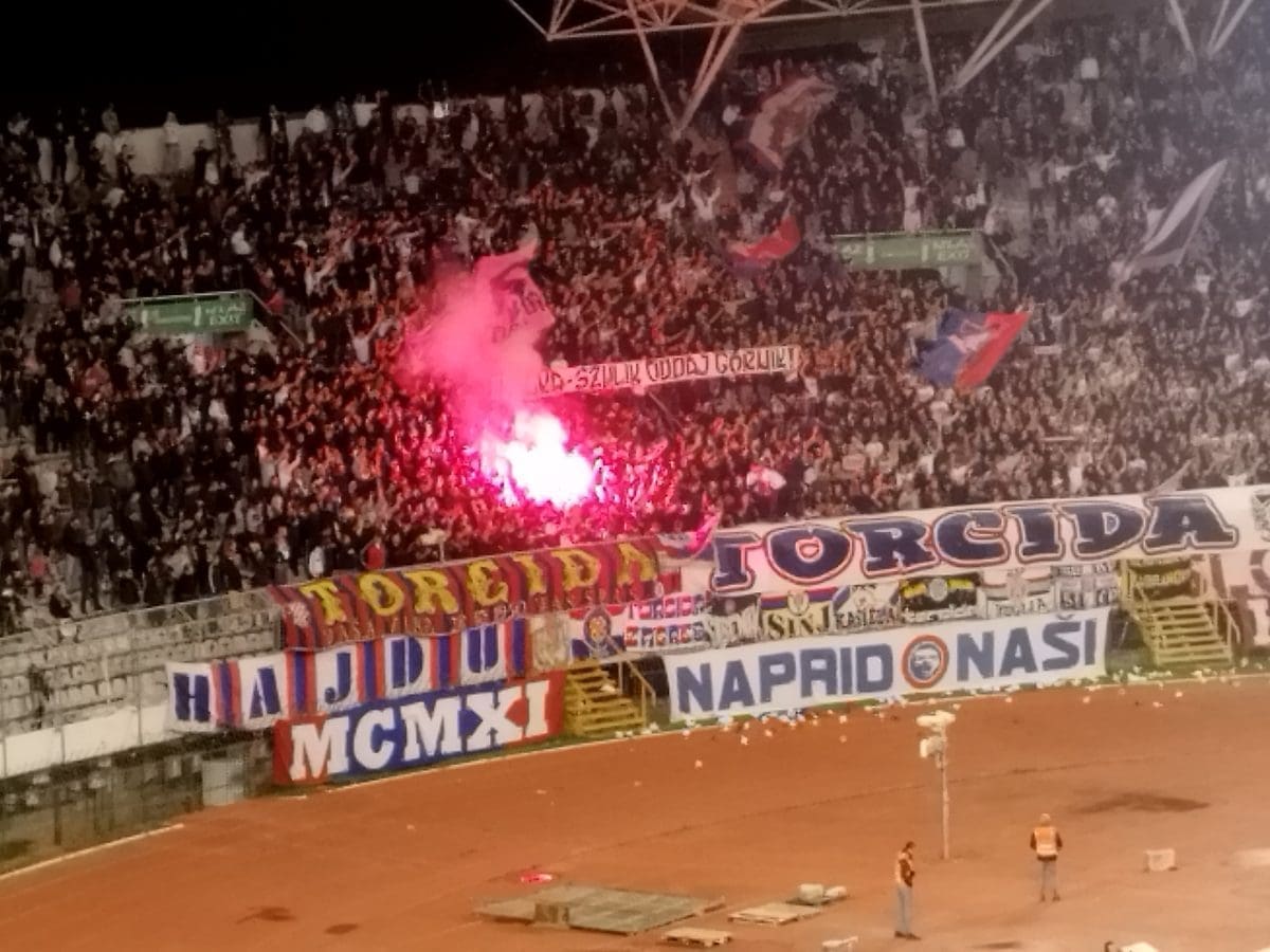 A tijekom utakmice u prvom poluvremenu, navijači su napravili bakljadu.