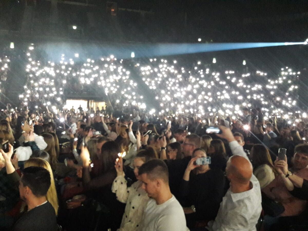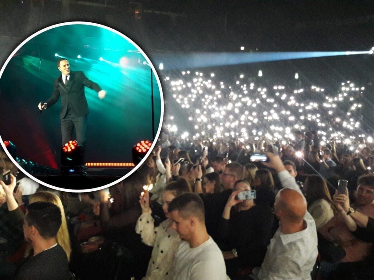 Crnogorski pjevač Sergej Ćetković, koji u prepunoj Spaladium Areni održava svoj dugo očekivani koncert, s publikom pjeva svoje najveće hitove.