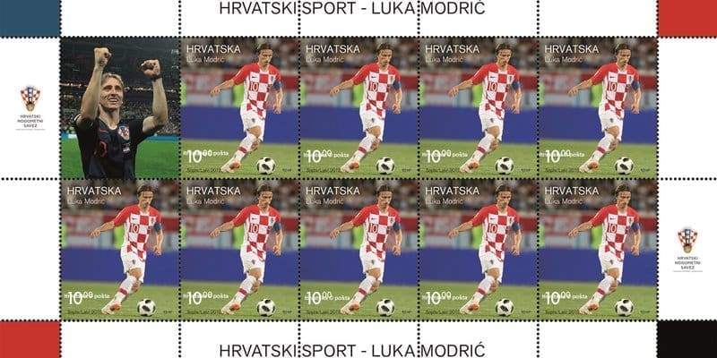 Hrvatska pošta pustit će u optjecaj u ponedjeljak 25. ožujka 2019. prigodno izdanje poštanske marke „Hrvatski sport – Luka Modrić“. Najtrofejniji kapetan hrvatske nogometne reprezentacije svojim je trudom i zalaganjem osim brojnih prestižnih strukovnih nagrada zaslužio i ovo priznanje.